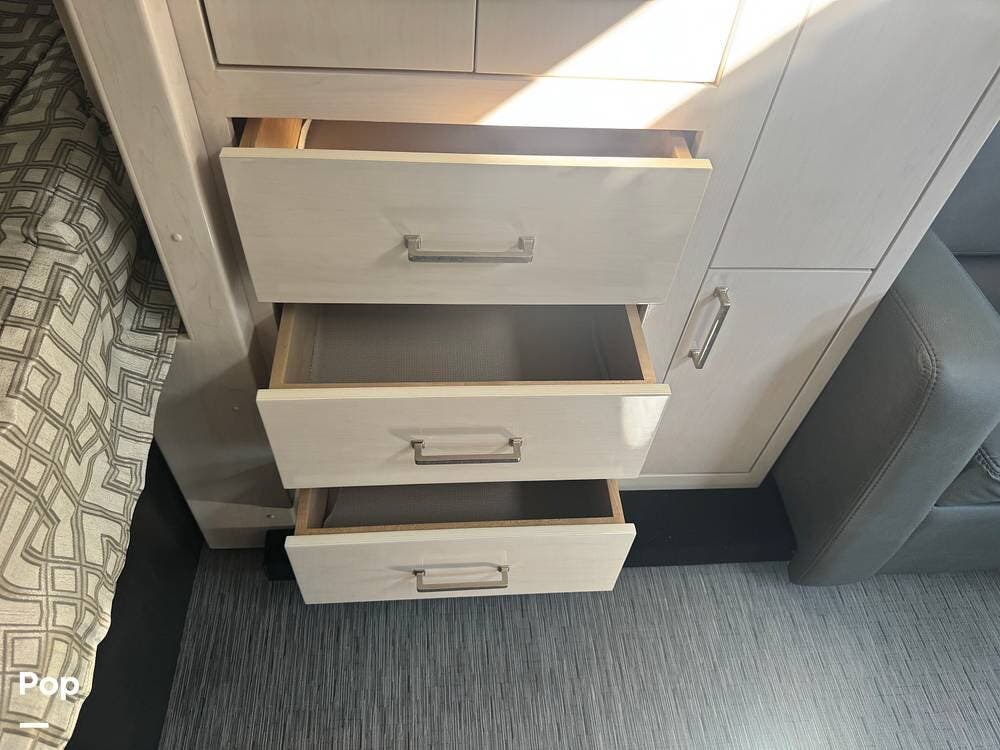 Technology and comfort are seamlessly integrated, with features such as climate control, LED lighting, a power awning, and intuitive coach systems that simplify life on the road. Multiple exterior storage compartments make it easy to bring along golf gear, beach supplies, or items for extended travel.