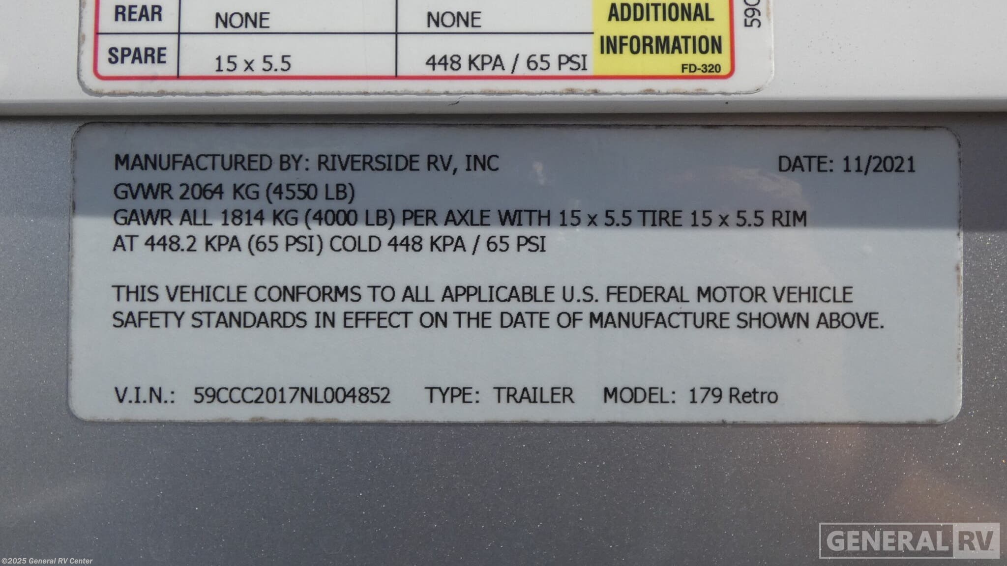 Request More Info on this 2022 Riverside RV Retro 179 Offered for sale by General RV Center