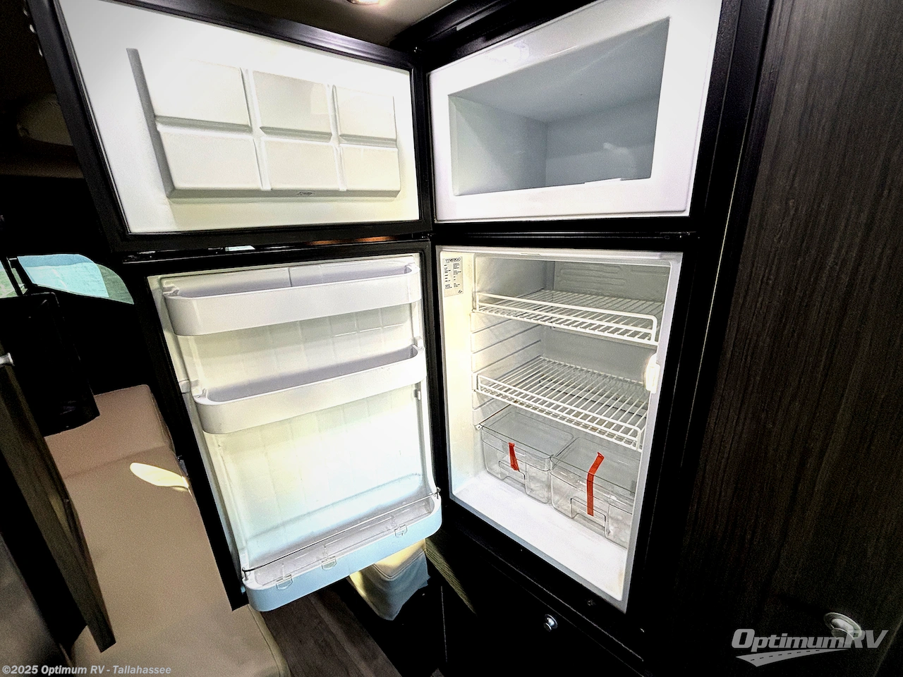 Chase your outdoor excursions in this comfortable motorhome for two! You will find side-facing rear power sofas that can convert to twin beds or a king-size bed for your comfort. If you're needing more sleeping space, just add the optional folding mattress for the front captain's seats! You can prepare at-home meals in the galley that features a two-burner propane stove, a 5-cu. ft. refrigerator, plus a counter extension with a charging station for your tablet or phone. After you've freshened up in the convenient wet bath, head outdoors for the day to enjoy the sunshine. When you return, you can make popcorn in the microwave oven and watch a movie on the 24" Smart TV!