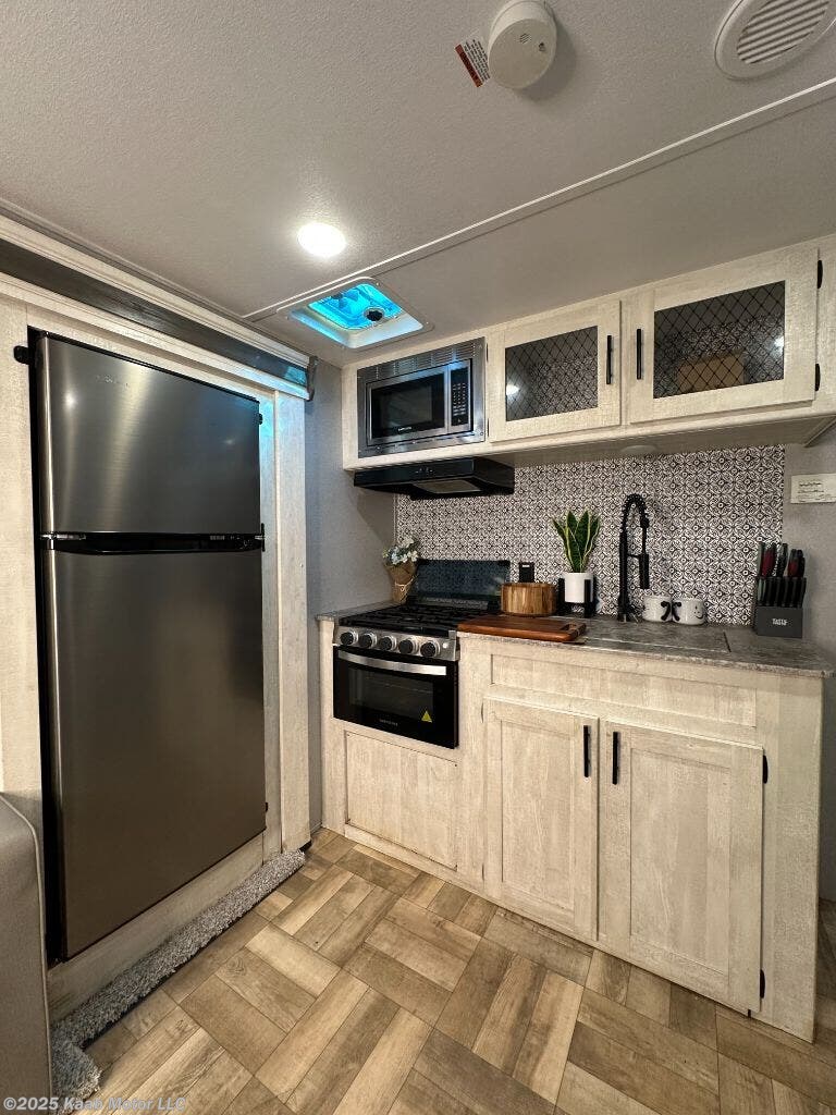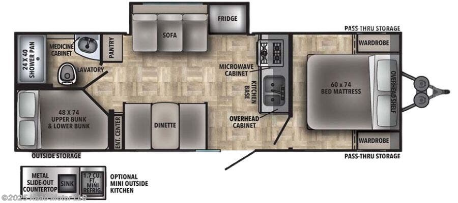 ??? 30FT Travel Trailer – Family Adventure Ready! ??? ?? Dimensions & Weight ?? Overall Length: 30 ft 3 in ?? Width / Height: 8 ft / 11 ft 3 in ?? Dry Weight: 5,188 lbs ?? Payload Capacity: 1,562 lbs ?? GVWR: 6,750 lbs ?? Hitch Weight: 710 lbs ?? Tank Capacities ?? Fresh Water: 42 gal ? Gray Water: 72 gal ? Black Water: 36 gal ?? Propane: 2 × 20 lb tanks (40 lb total) ?? Structure & Systems ?? Steel I-beam frame / Aluminum walls ?? Diflex II TPO membrane roof ?? Fully insulated residential-style build ?? 25,000 BTU Furnace ?? 13,500 BTU Ducted A/C ?? Power Converter included ?? Interior & Sleeping ?? Sleeps up to 9! ?? Queen bed + Double bunks + Sofa + Dinette ?? 10 cu. ft. residential refrigerator ?? 3-burner stove + Microwave ?? Large L-shaped counter with under-mount sink ?? Connectivity & Extras ??? TV hookups + Bluetooth Stereo ?? Solar & Wi-Fi Prep ?? Backup Camera Prep ? 1 Slide-out + 12 ft Power Awning with LED Lights ?? Outdoor Kitchen with mini-fridge + cooktop ?? KAAB Motor LLC 11528 US Highway 41 South Gibsonton, FL 33534 ?? Call/Text: (813) 252-5510 ?? Don’t wait – come see it today and get ready for your next adventure! ???