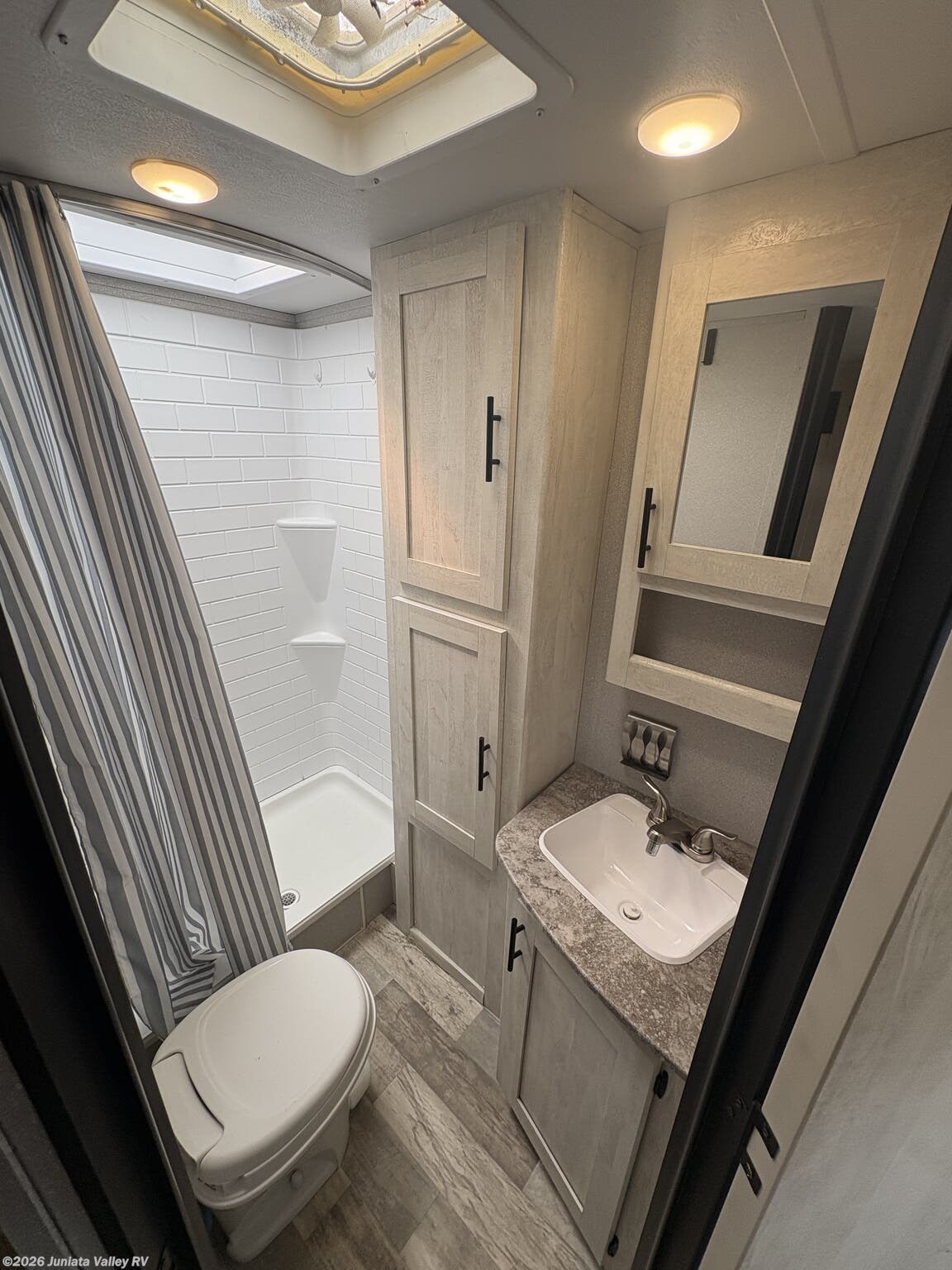 - Front overhead storage, medicine cabinet, and pantry