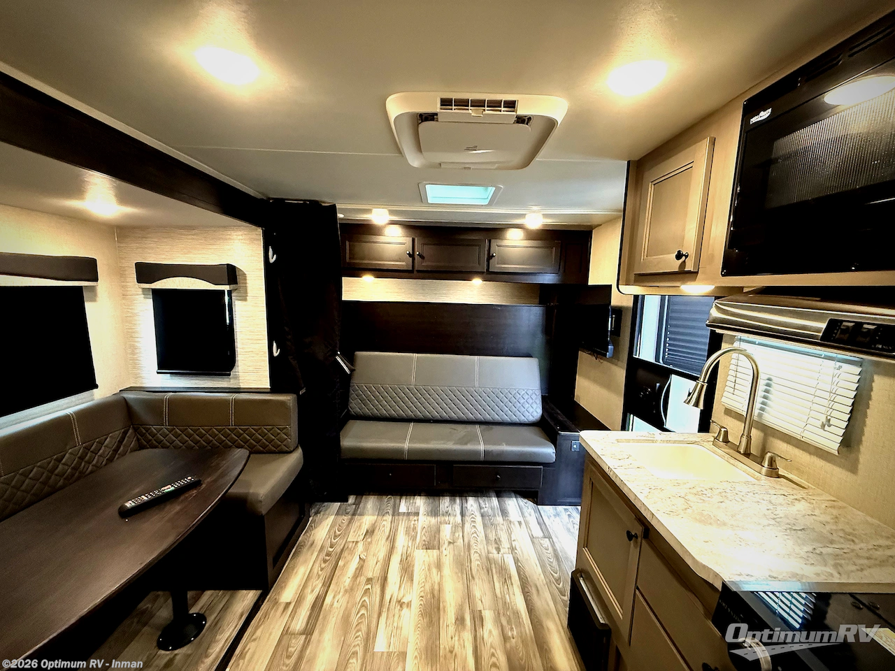 You are not going to believe how accommodating this Super Lite Maxx travel trailer is! There are many features packed into this lightweight trailer, like the front Murphy bed that can fold away to reveal a jackknife sofa for afternoon lounging and the set of double-size bunks with storage below the lower bunk and a privacy curtain. One of the other phenomenal features is the outdoor kitchen that you can use underneath the 15' power awning. You also have a full indoor kitchen, so you can have two chefs preparing at the same time. The U-shaped dinette is excellent because it provides you with a place to play games and eat meals, but it also provides you with a bed once you position it into place.