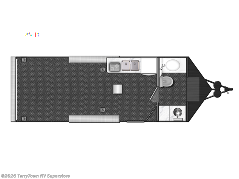 This front bath toy hauler is ready for adventure when you are! There is an RV toilet, a medicine cabinet, and robe hooks to keep everything picked up. The kitchen has everything you'd expect to find at home; a microwave oven, a refrigerator, plus a two burner drop-in cooktop. The jackknife sofas allow you to sleep two comfortably, and the ramp door will make unloading quick and simple.