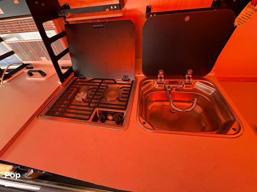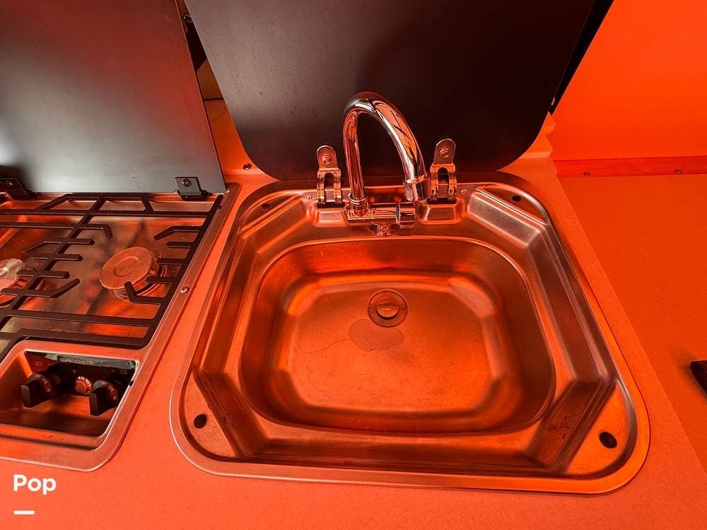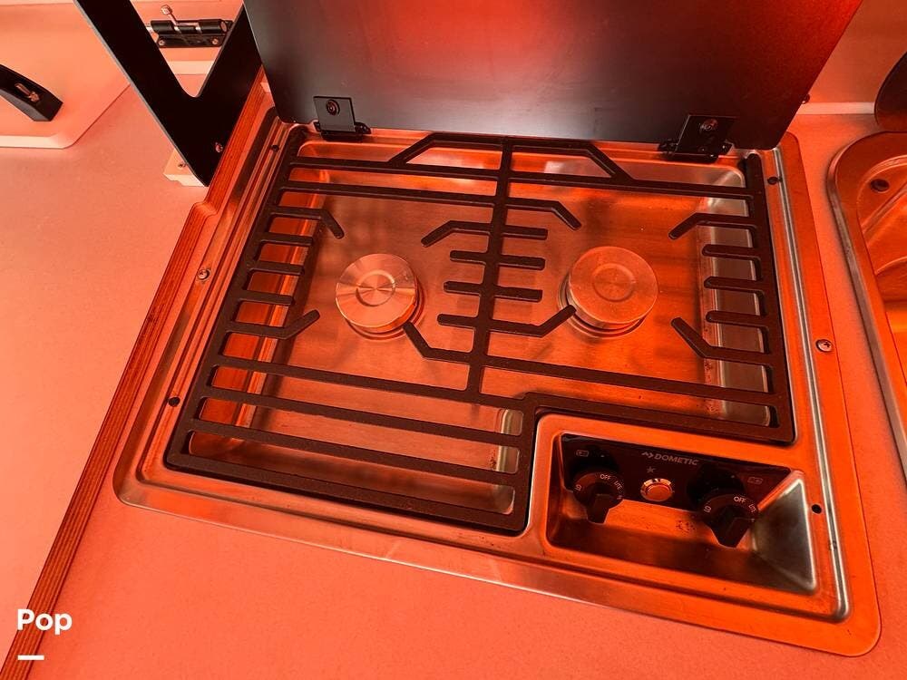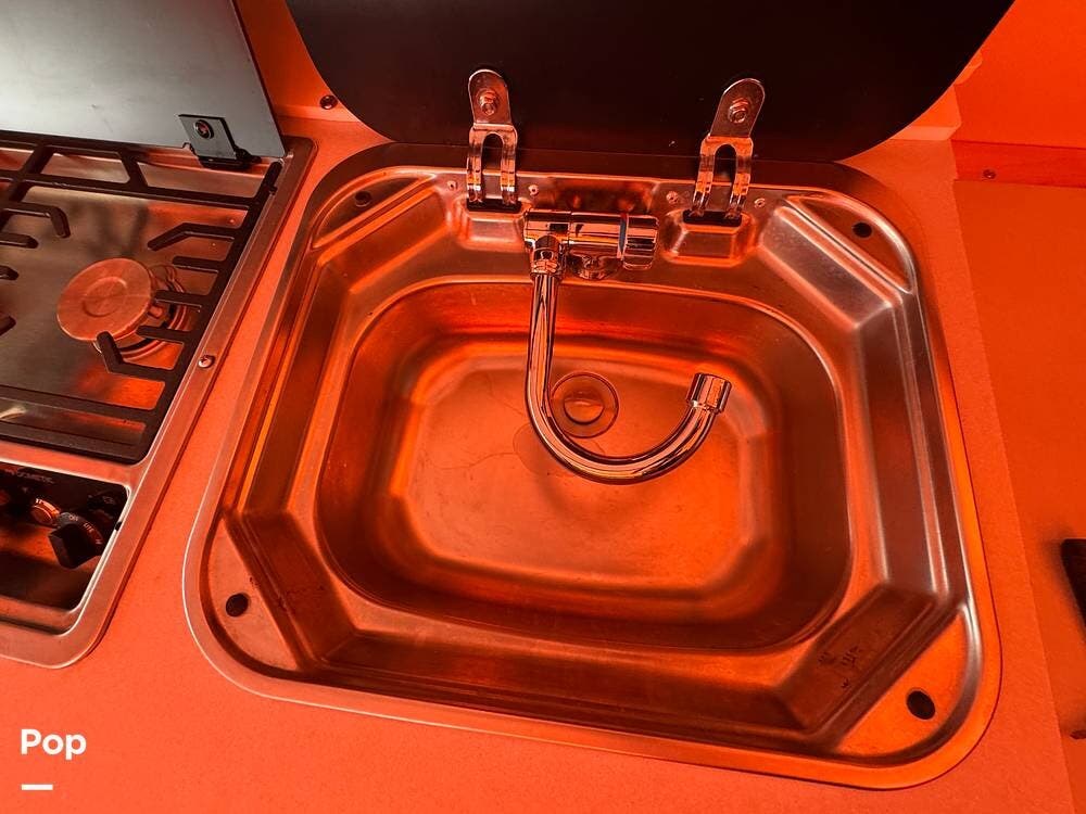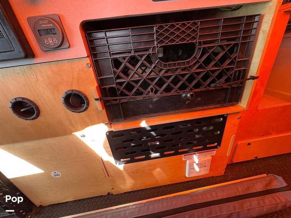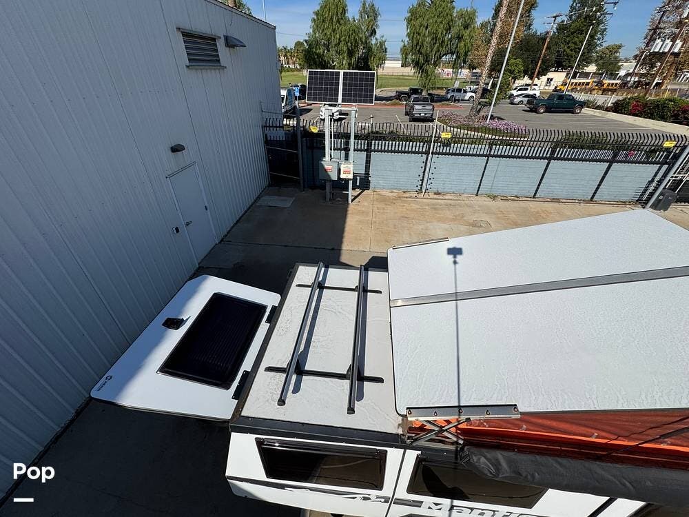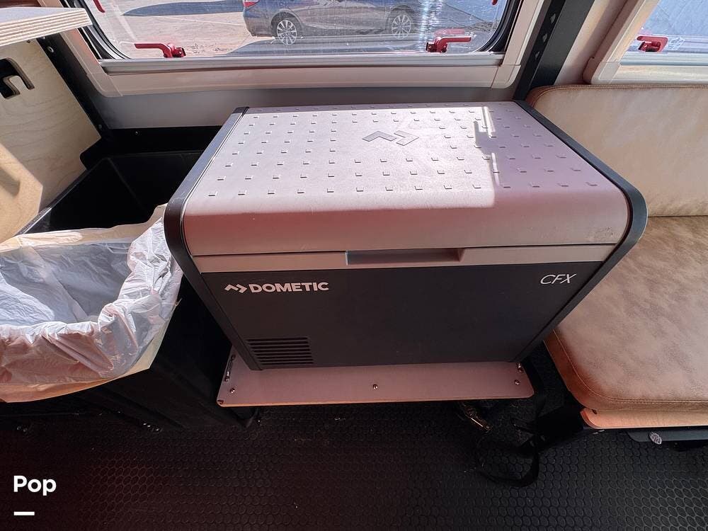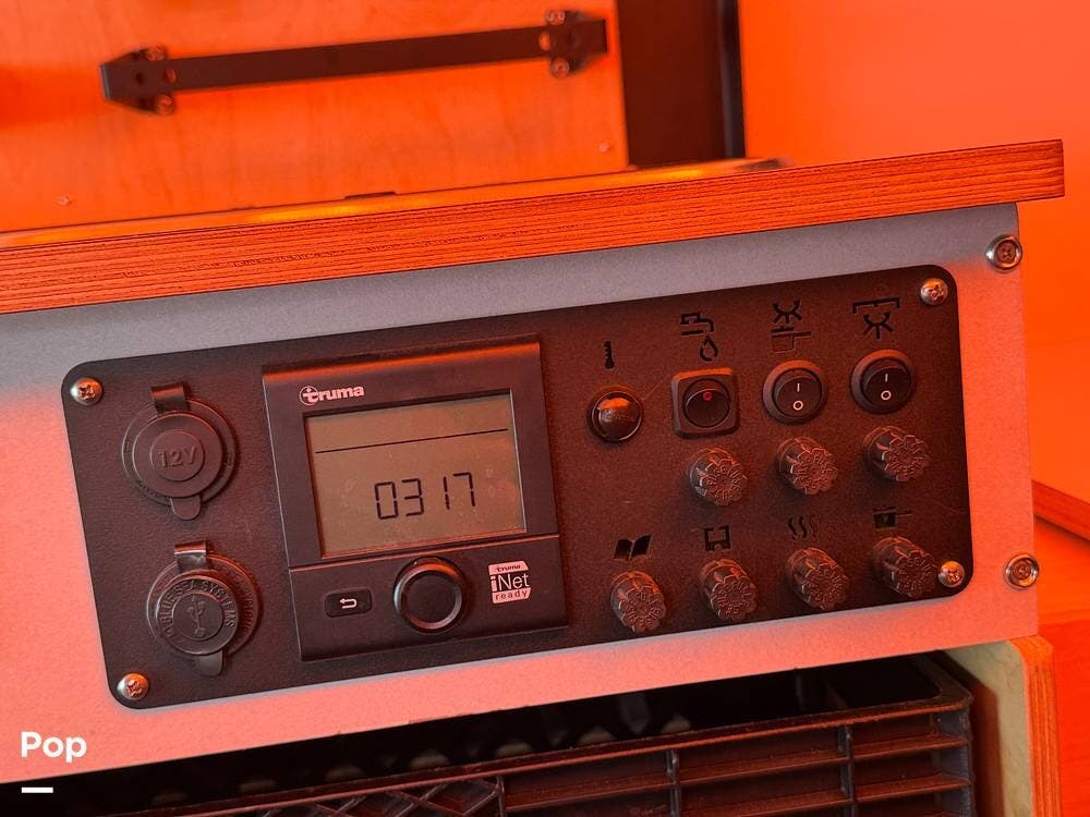 For extended trips and off-grid living, this Mantis is equipped with 200 watts of roof-mounted solar, two lithium batteries, and an 8,000 BTU air conditioner to keep the interior comfortable in warm conditions. The Truma heat and hot water system keeps you warm when things cool down.