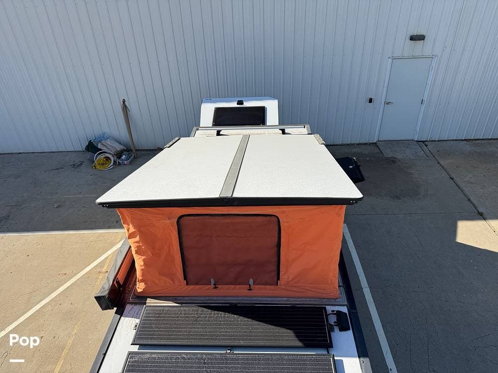 The innovative pop-top design expands interior headroom while maintaining a compact tow profile.