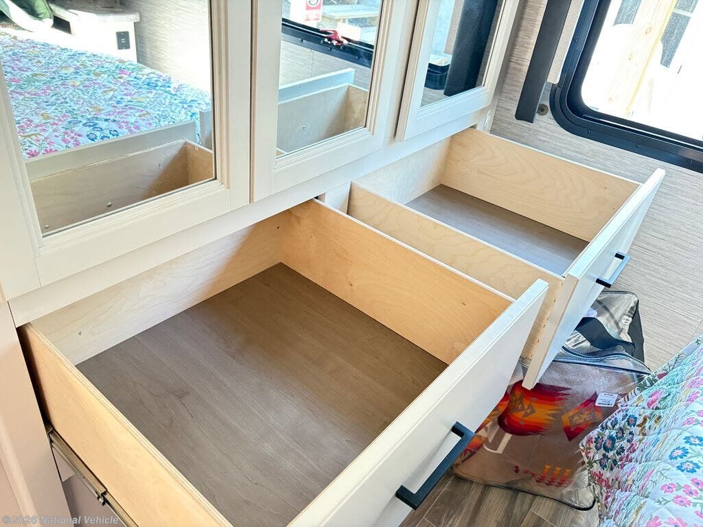 Inside, the thoughtfully designed 30.3 floorplan maximizes both comfort and functionality. The living area has been tastefully upgraded with a brand-new double recliner in place of the traditional jackknife sofa, creating a more residential and relaxing space to unwind. The upgraded queen mattress in the private bedroom ensures restful nights, making extended stays just as comfortable as home.