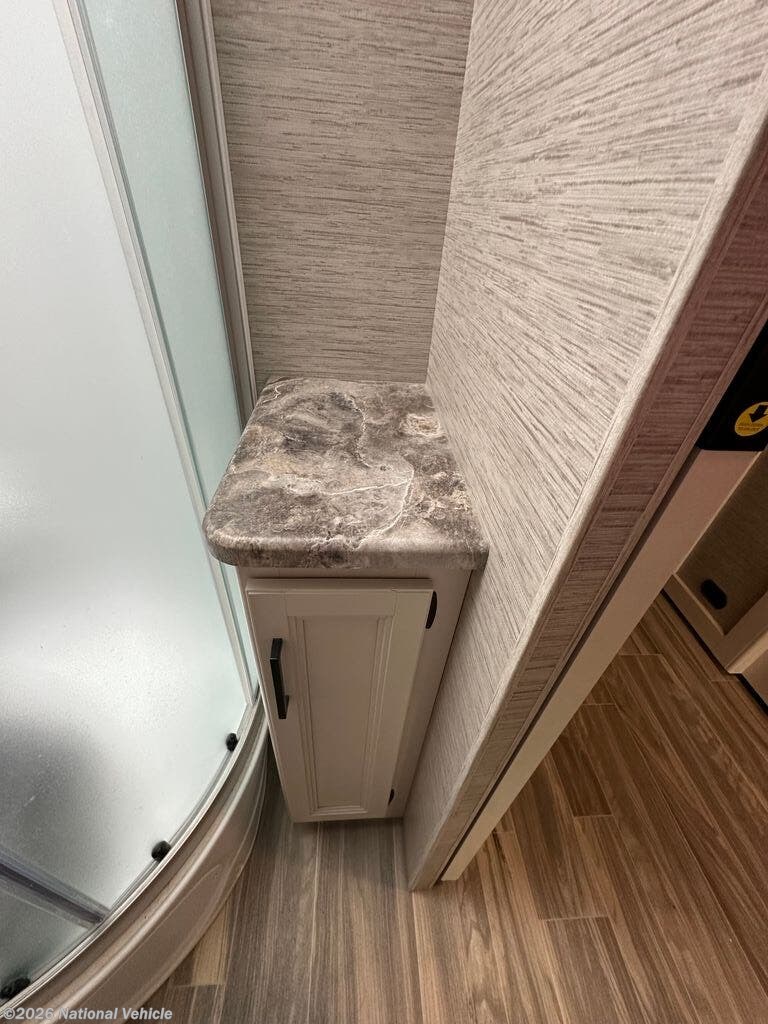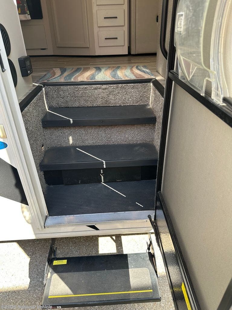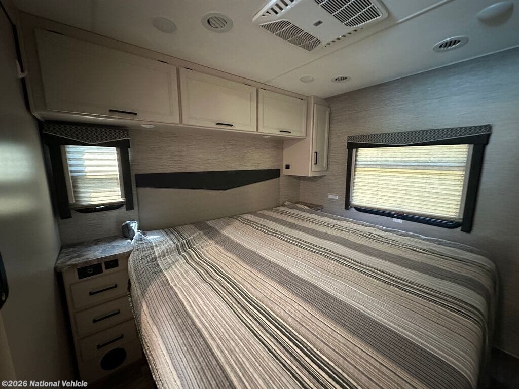 Stretching just over 33 feet in length, this coach is powered by a dependable Ford 7.3L V8 engine delivering 350 horsepower, giving you the confidence to cruise highways or tow up to 8,000 lbs with ease. Its smooth ride and user-friendly driving experience make it ideal for both first-time RVers and seasoned travelers alike.