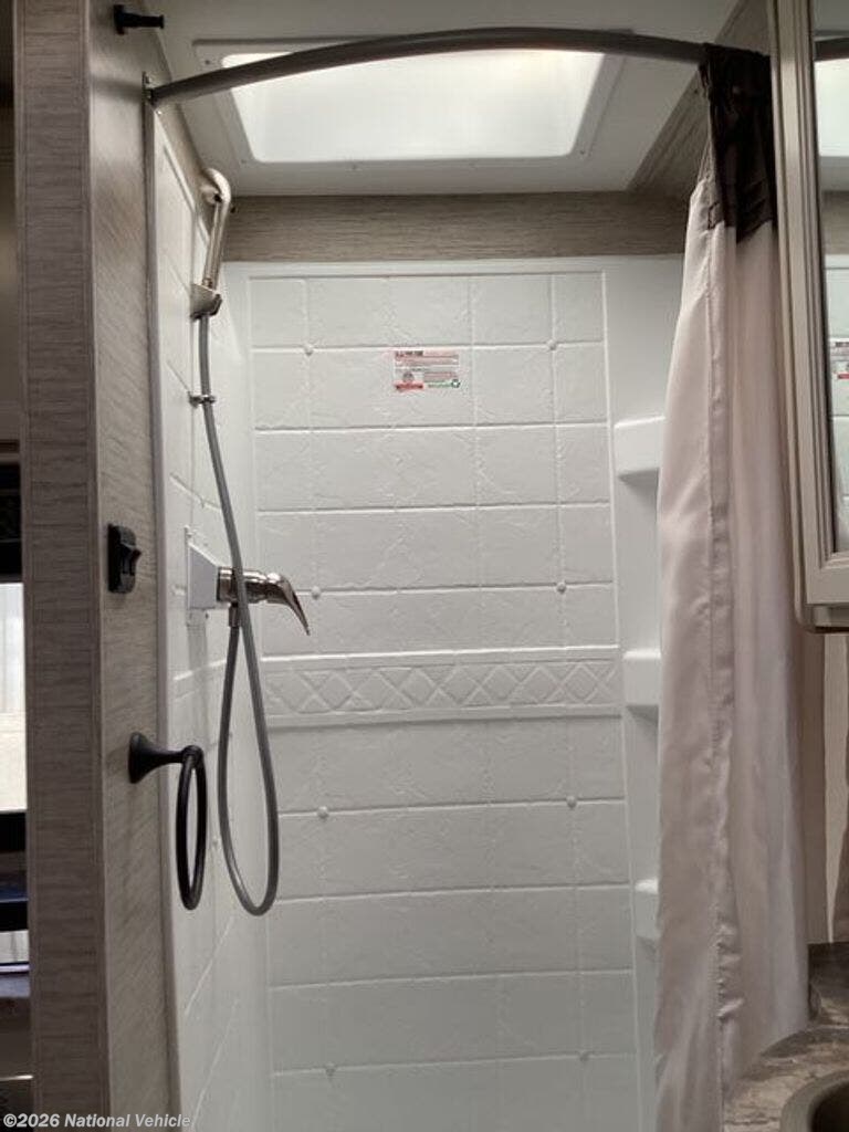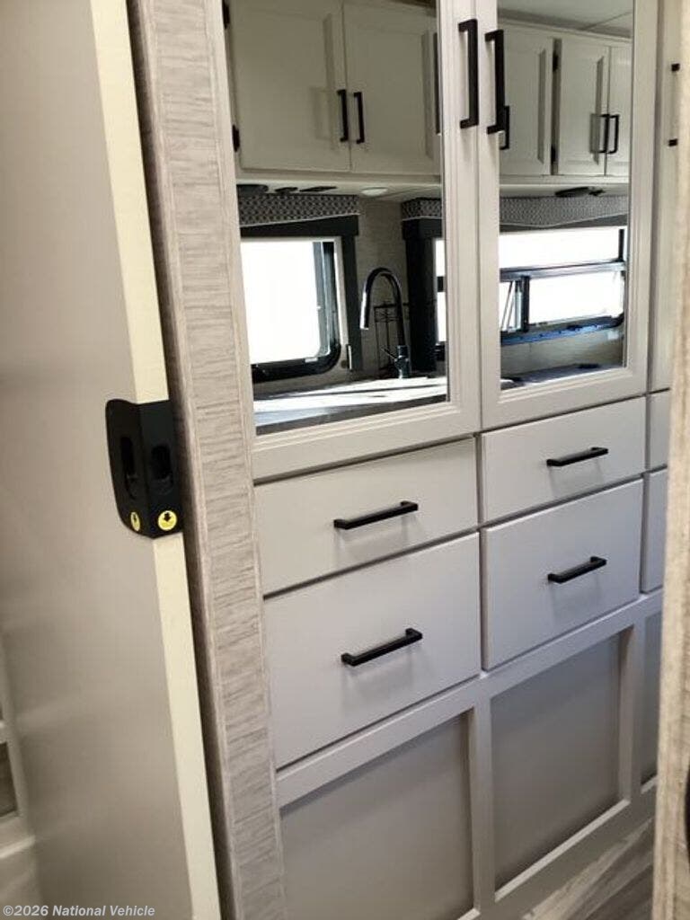 Step inside and you?ll find a bright, contemporary interior featuring a living room slide that opens up the living space. The layout includes a queen-size Murphy bed, a spacious rear bath, and a well-equipped kitchen with a convection microwave, solid-surface countertops, and a refrigerator. The Dream Dinette easily converts into an additional sleeping area, and there?s a power drop-down bunk over the cab for extra guests.