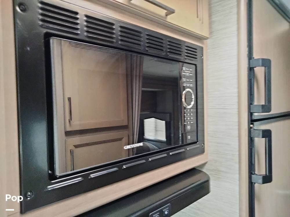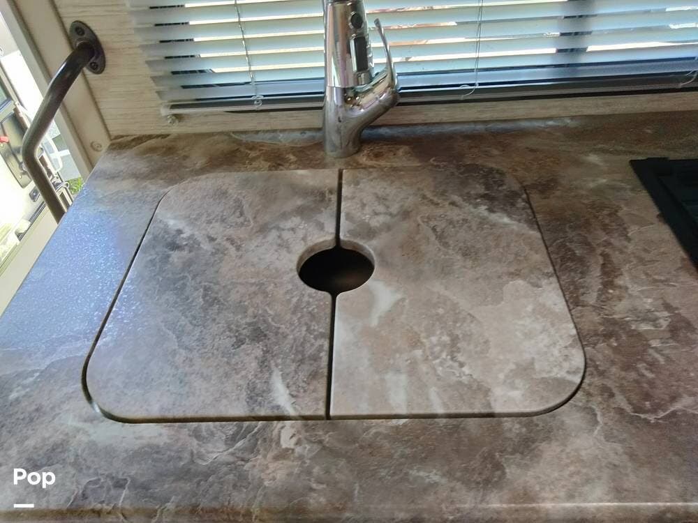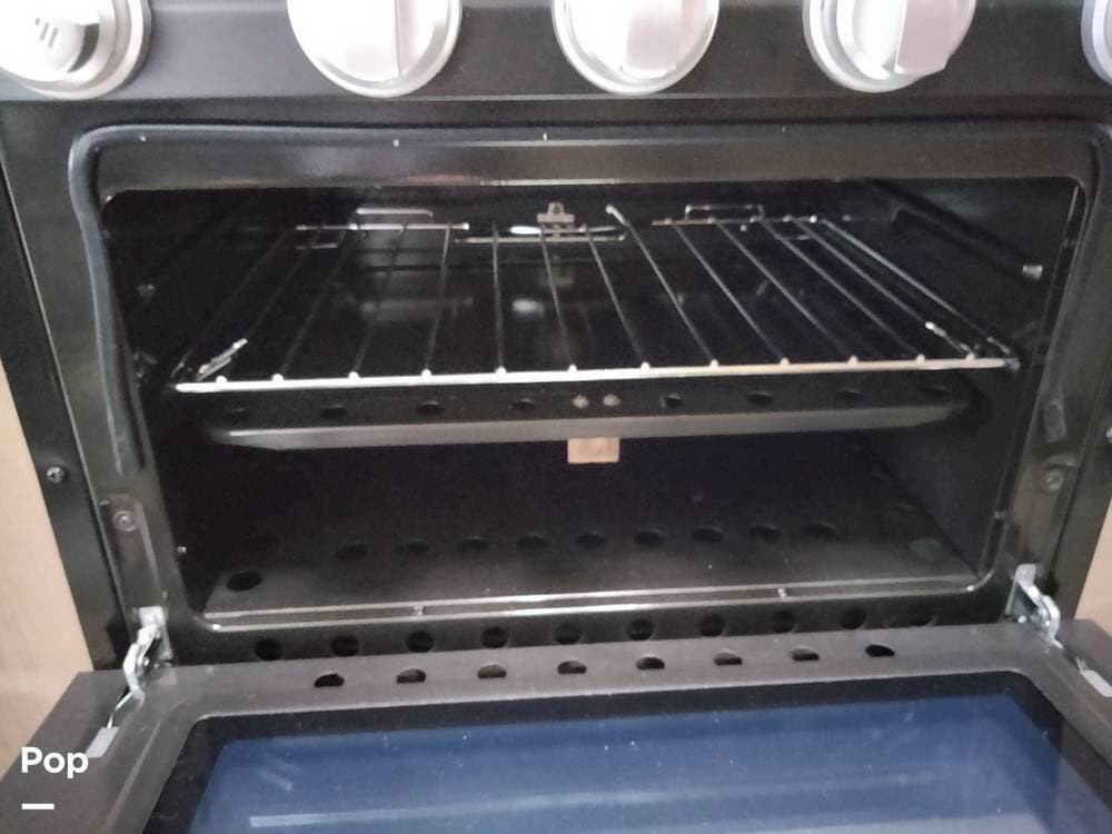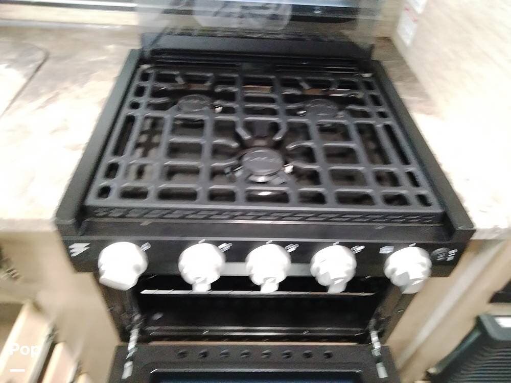The kitchen is fully equipped with a stove/oven, microwave oven, and a large refrigerator to prepare delicious meals on the go. The kitchen is large with a full-size sink, plenty of storage space, and a large countertop with a collapsible extension for meal prep.