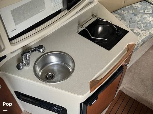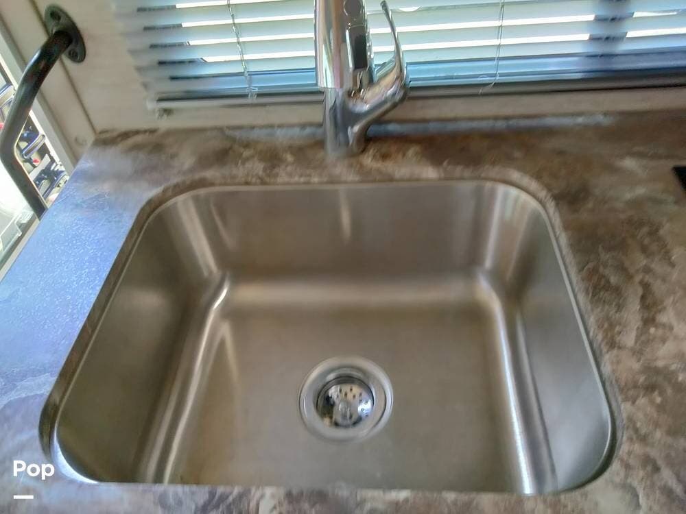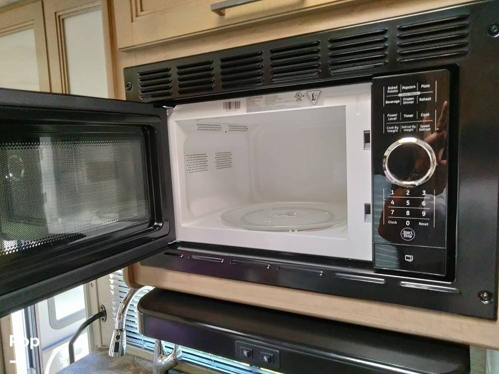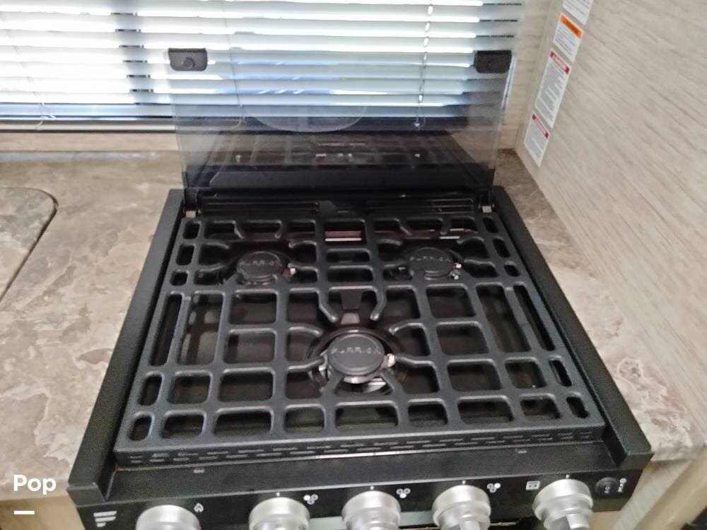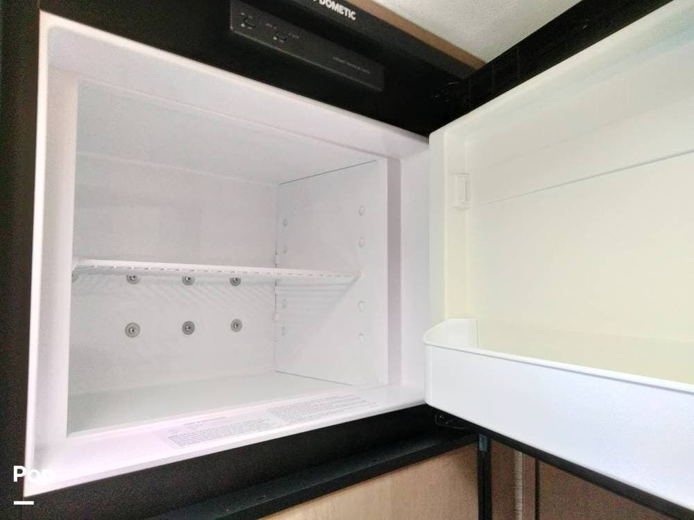 The kitchen is fully equipped with a stove/oven, microwave oven, and a large refrigerator to prepare delicious meals on the go. The kitchen is large with a full-size sink, plenty of storage space, and a large countertop with a collapsible extension for meal prep.