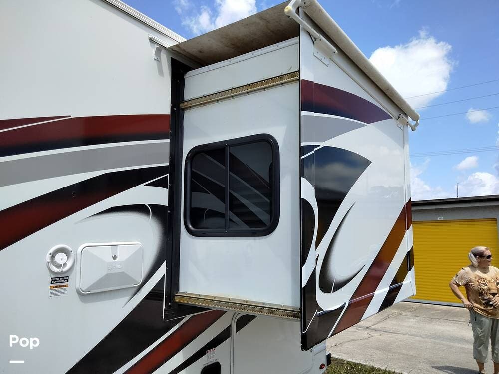 This unit is also including a Electric Stabilizing System; 32" TV in Bedroom; 39" TV in CabOver; A/C; Generator; Inside and Outside Showers; Patio Awning