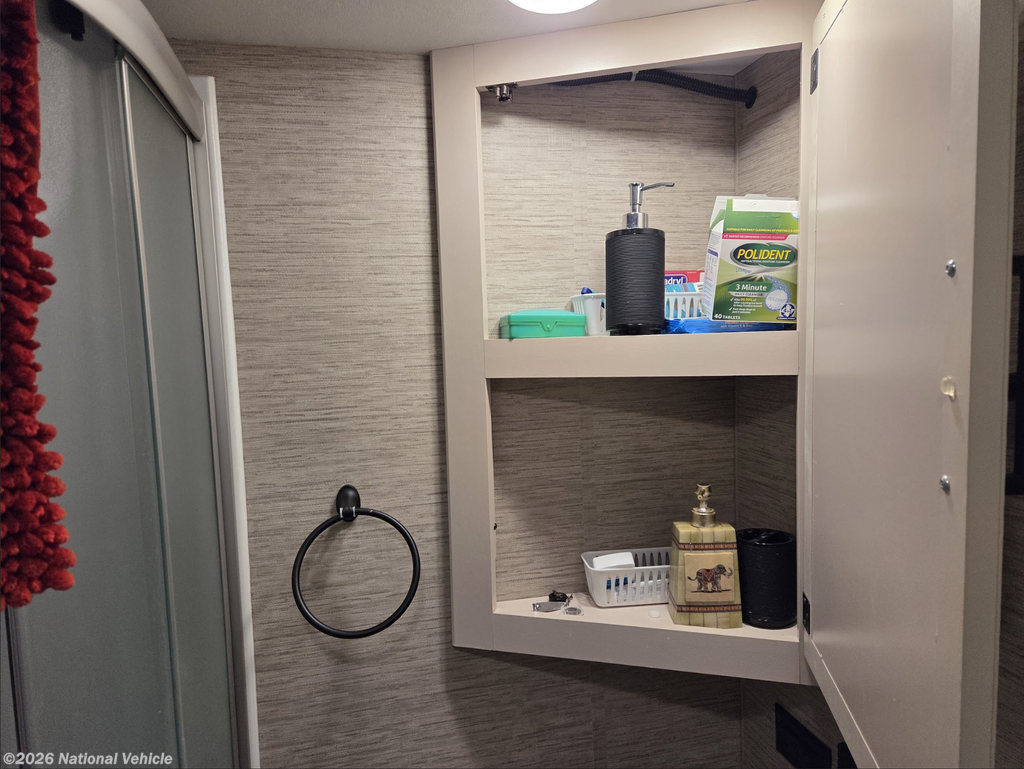 Comfort is paramount with dual air conditioning units, ensuring a cool, relaxing environment in any climate. The on-demand water heater provides endless hot water, while solar power enhances off-grid capability and efficiency. Stay connected and entertained with Dish Satellite already installed.