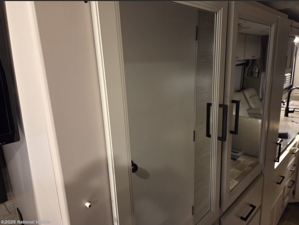 From the moment you arrive, the full body paint and power patio awning set a bold, luxury tone. Automatic leveling jacks make setup effortless, so you can relax the moment you park.