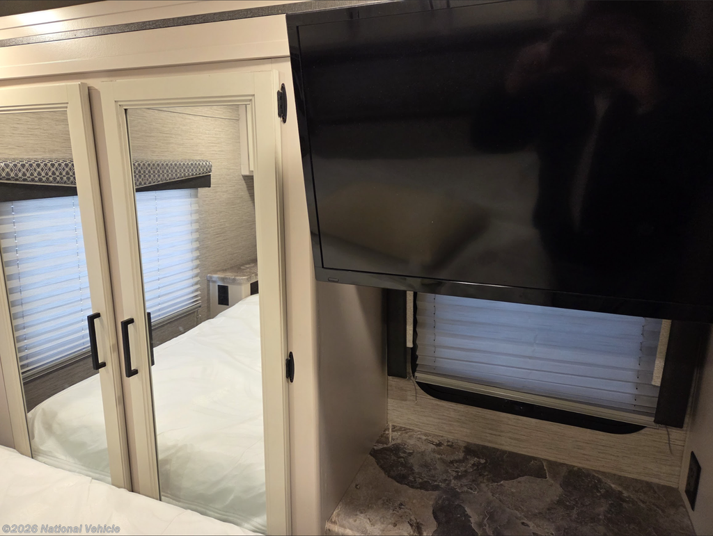 Inside, the Chateau 28Z shines with a thoughtfully designed, spacious layout highlighted by a full-body slide-out that opens the living area beautifully. Above the cab, you?ll find bunk beds over the driver seats, perfect for kids, guests, or extra storage. Plush theater seating invites you to unwind in style, while two interior LED TVs and an additional exterior entertainment TV make movie nights and game days exceptional-inside or out.