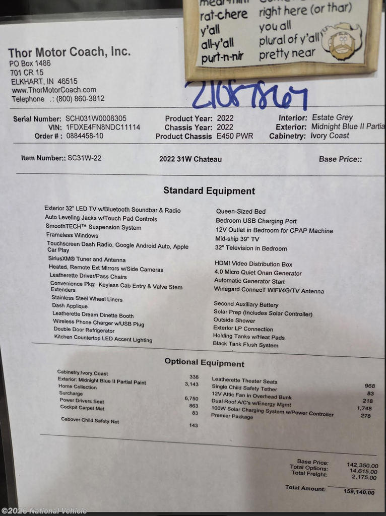 Looking to buy a 2022 Thor Motor Coach Chateau Class C RV?
