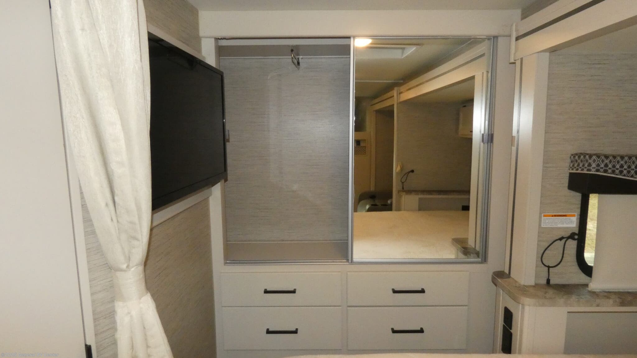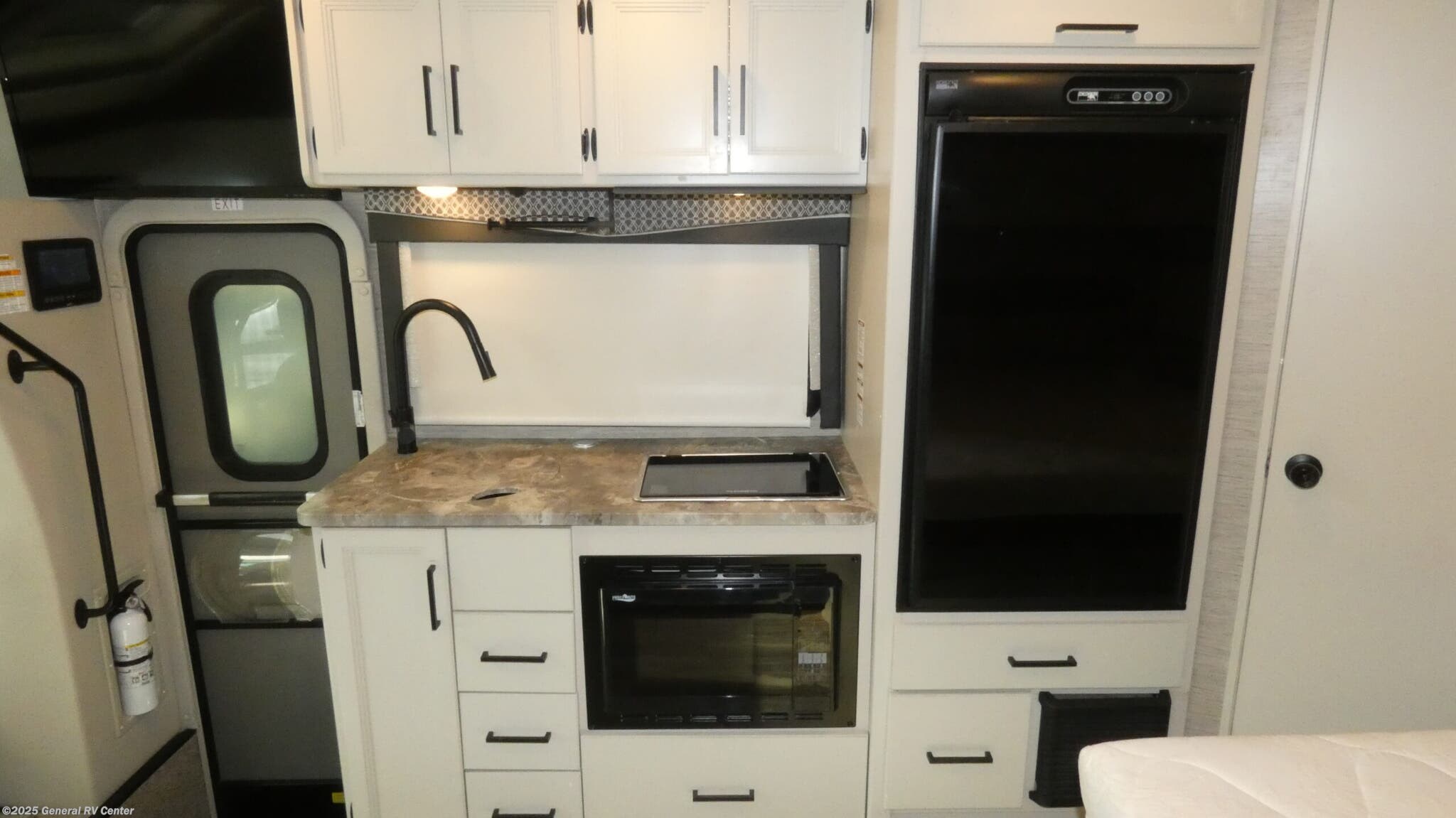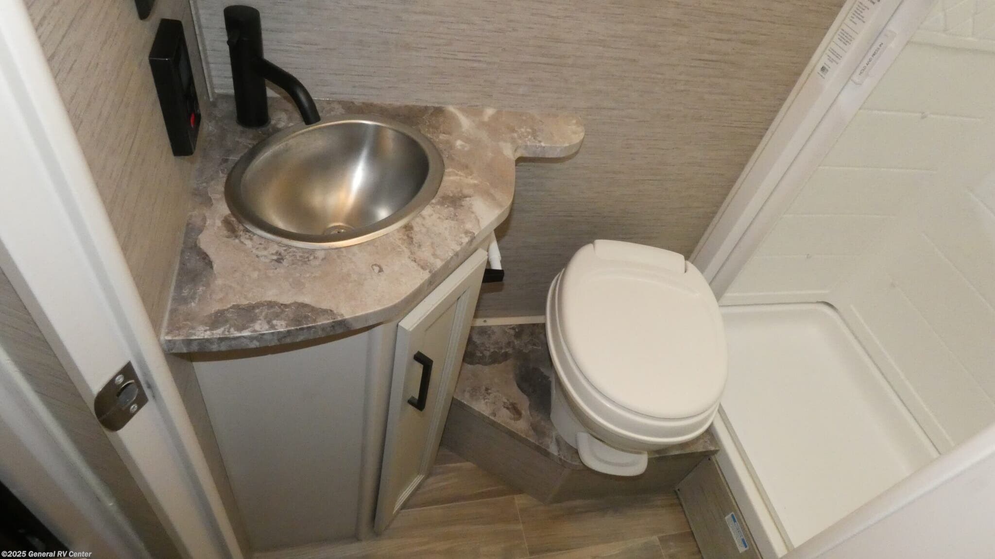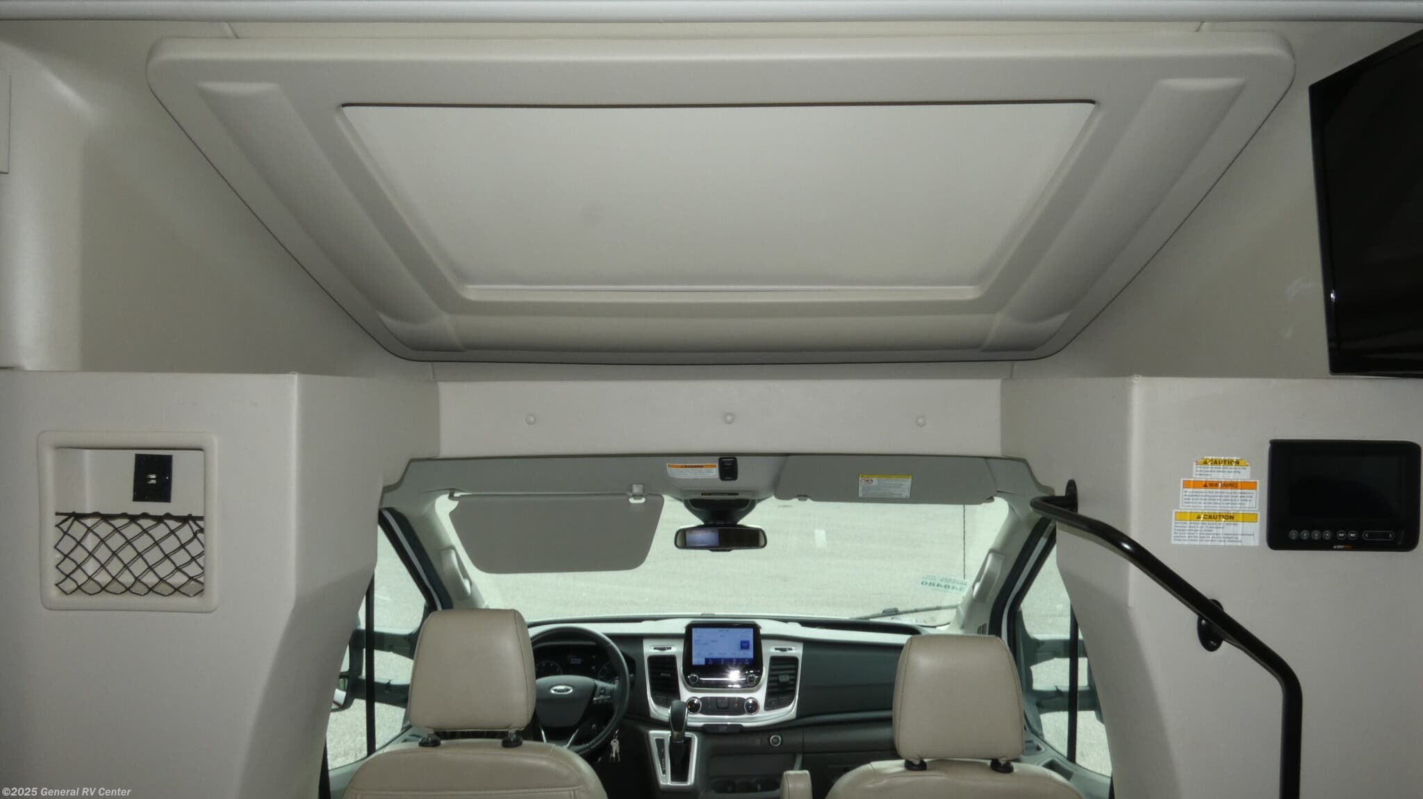Thor Motor Coach Compass AWD Class B+ gas motorhome 23TW highlights: Flip-Up RV Queen Bed Full-Wall Slide 24" x 32" Shower Built-In Skylight Over Cab You can tour a local winery or trek up north to find a cozy and secluded camping spot with this Compass AWD Class B+ gas motorhome! All of your needs will be met with the excellent features and amenities included on this coach, like the full bathroom complete with a 24" x 32" shower, three robe hooks, a shower skylight, a foot-flush toilet, and a power bath vent. The kitchen is ready to help you make mobile meals, and the 68" Dream Dinette is the perfect place for eating those meals or playing a game later on. At the dinette table top, you'll find a wireless phone charger with USB plug so that you can charge your phones. There is a privacy curtain that sections off the flip-up RV queen bed, and you'll also find a 32" TV in the bedroom. The second 32" TV is located out in the main living area for everyone else to watch. The Thor Motor Coach Compass AWD Class B+ gas motorhome is small but mighty! It includes all-wheel drive, and it is built upon a Ford Transit chassis, 3.5L V6 Eco Boost turbo gas engine, and Ford ten-speed automatic overdrive transmission. The Ford safety features provide excellent care while driving, and you can stay connected to your Compass AWD with the FordPass Connect. The power patio awning with LED lights can be moved out into position with just one touch on your cell phone thanks to the Rapid Camp+ multiplex control system. You will have a 100W solar panel with controller, a single roof air conditioner, a Winegard ConnecT 2.0 Wi-Fi/4G/TV antenna, and a tankless water heater as some of the top electrical and plumbing features.