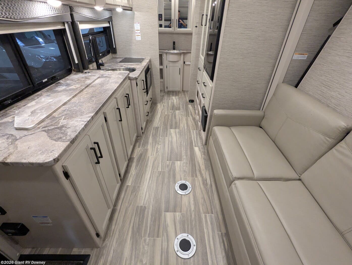 - Modern Amenities: Features a 15K BTU A/C, kitchen with 3-burner stove, microwave, and 24" LED TV for convenient living.