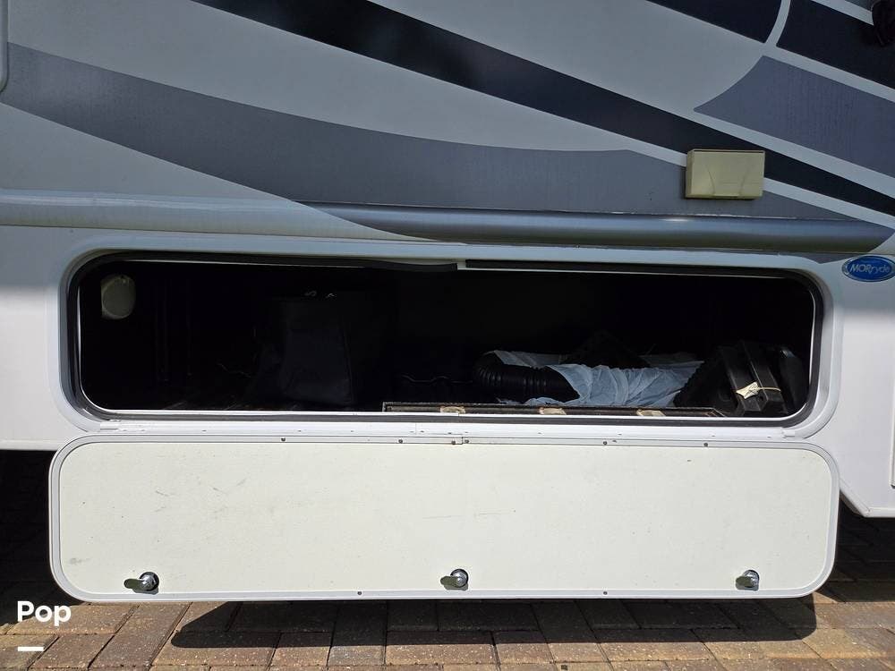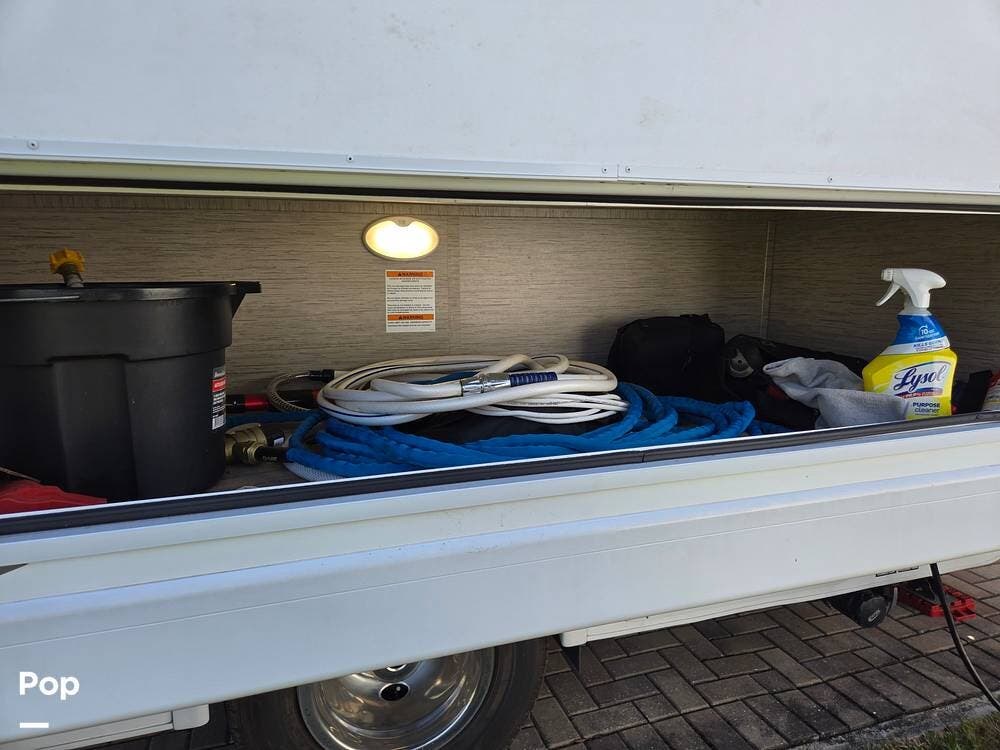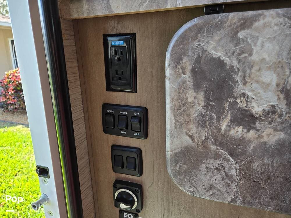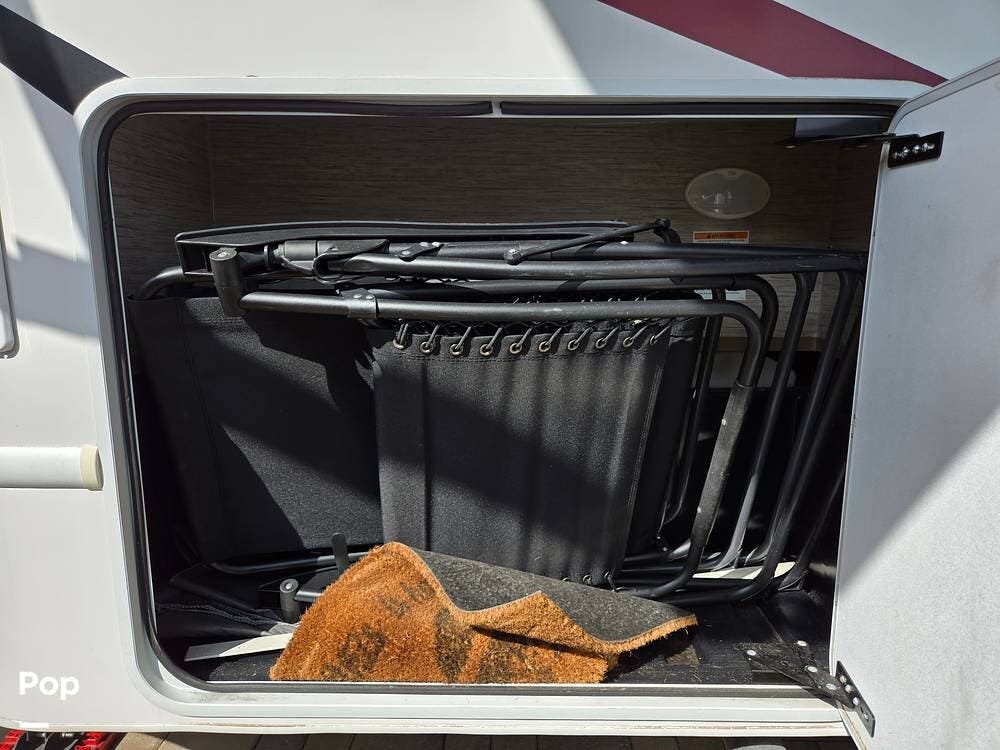 There is lots of storage outside. A comfortable electric shade awning and easy steps up to the interior.