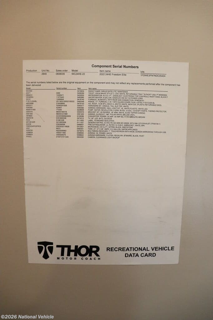 Request More Info on this 2022 Thor Motor Coach Freedom Elite 24HE Offered for sale by National Vehicle