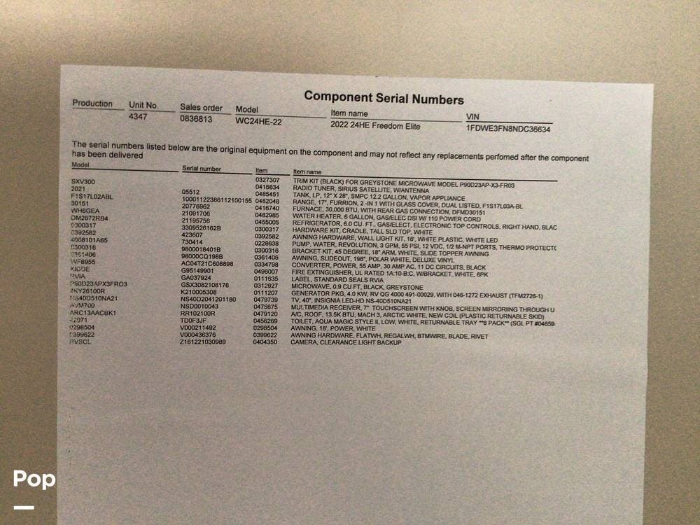 If you are in the market for a class c, look no further than this 2022 Freedom Elite 24HE, priced right at $71,700.00. Non-smoking. This Class C is located in Stafford, Virginia and is in good condition. She is also equipped with a Ford engine that has 6,550 miles.