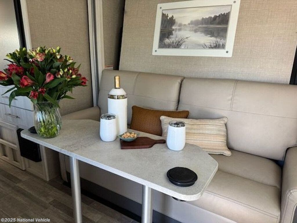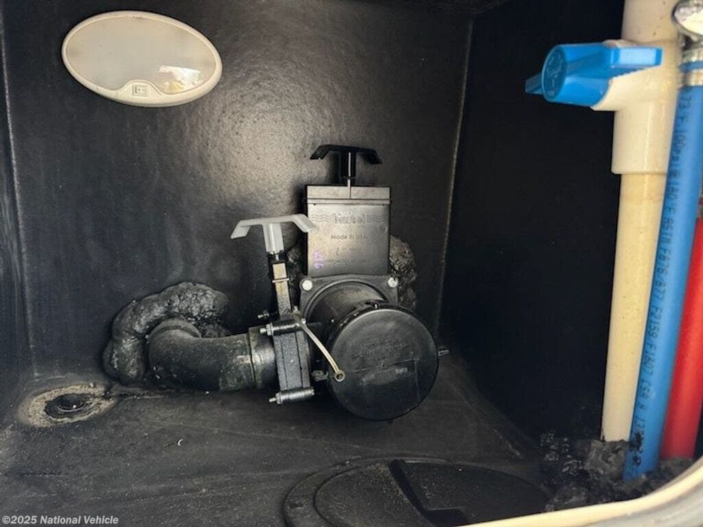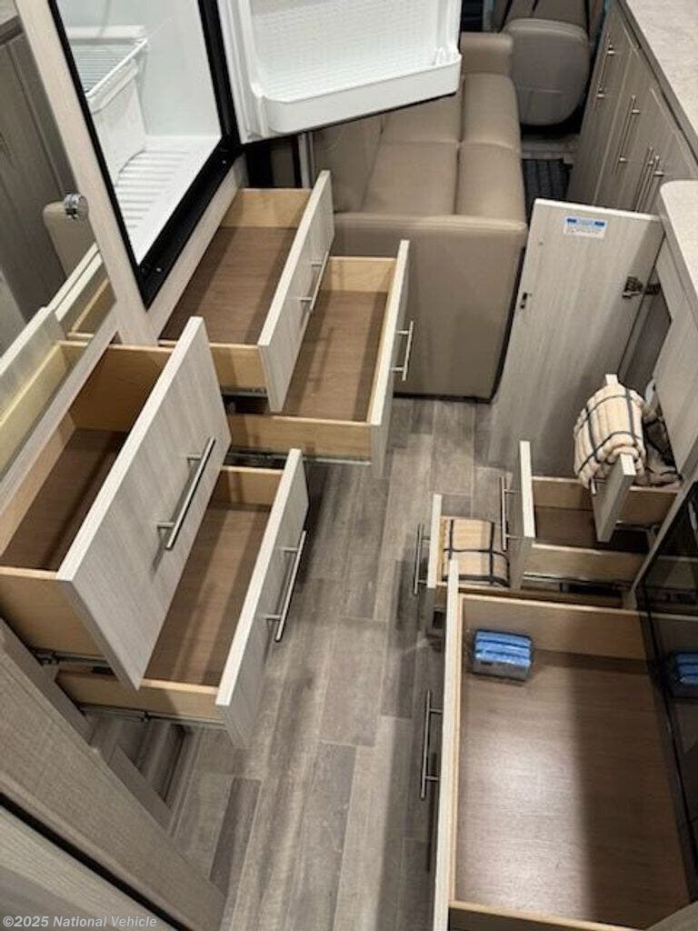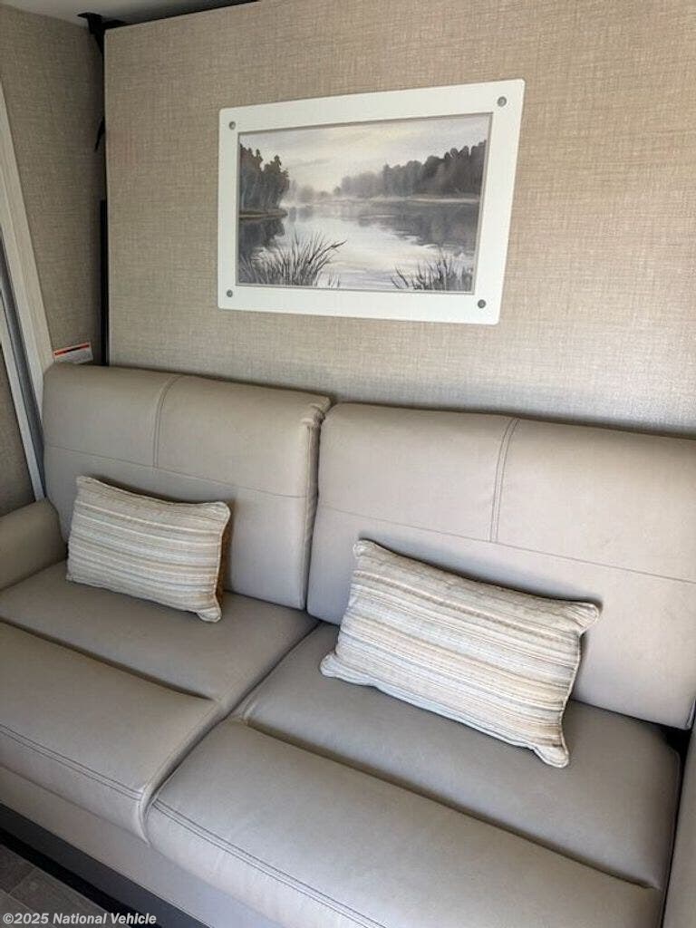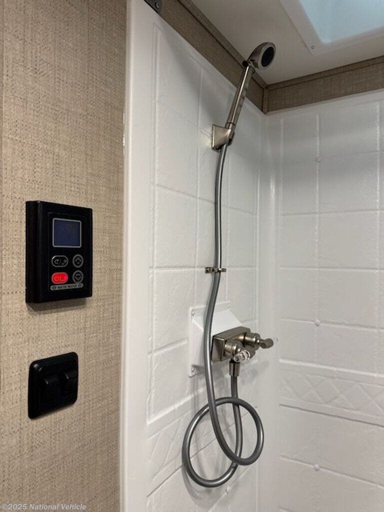 The fully equipped kitchen features a two-burner gas cooktop, convection microwave, stainless-steel sink, and refrigerator, allowing you to prepare meals with ease on the go. The full bathroom includes a shower, toilet, vanity, and storage, offering complete residential-style convenience in a compact footprint.