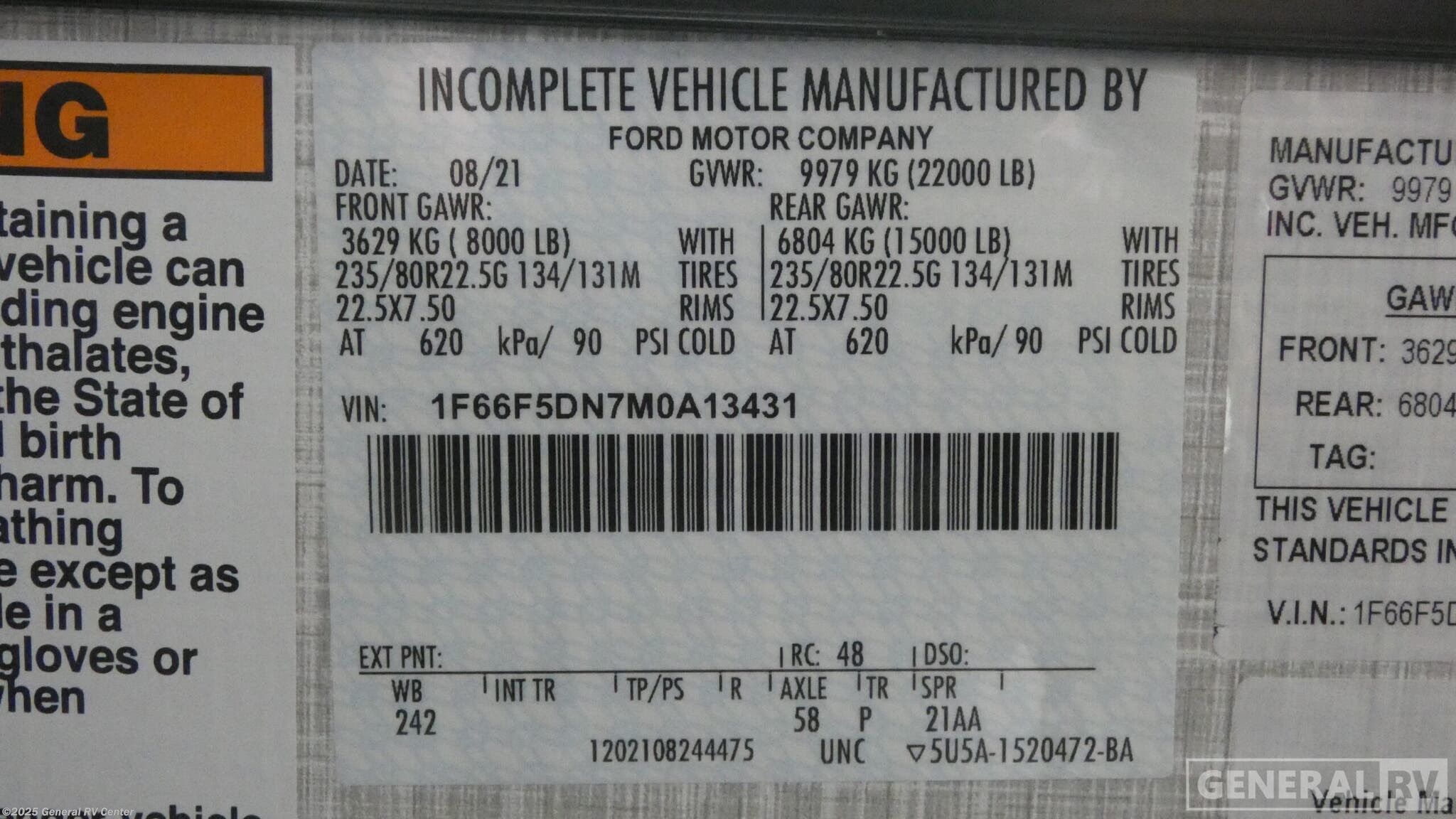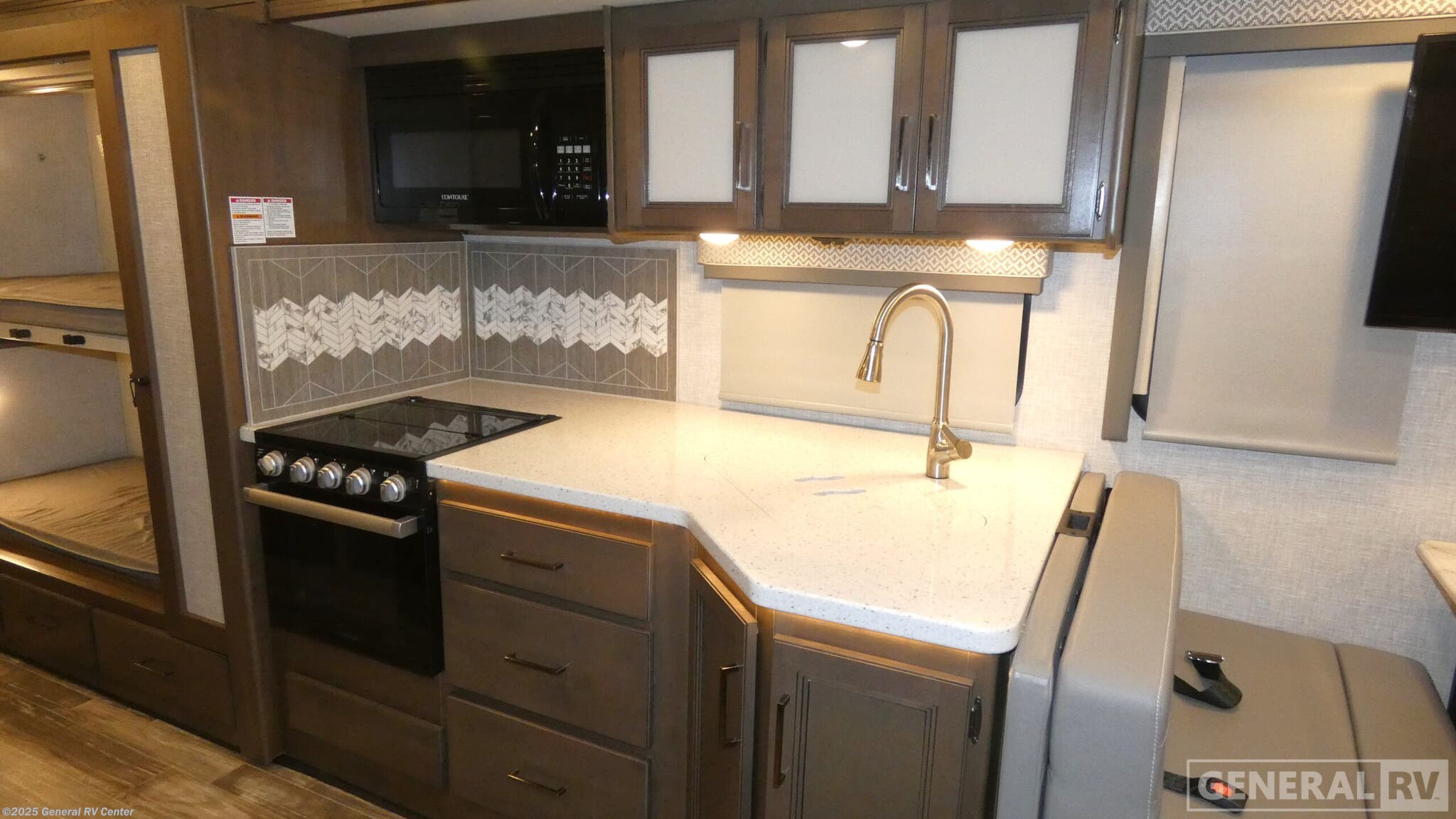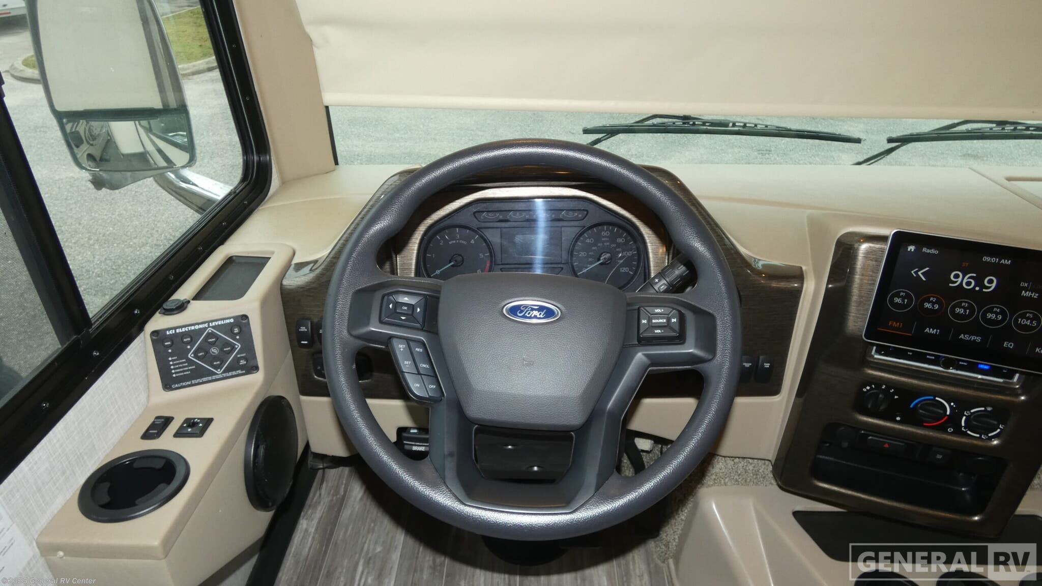 Experience the open road like never before with the 2022 Thor Motor Coach Windsport 34J. This magnificent motorhome is designed to accommodate up to 10 sleepers, making it perfect for family adventures or group getaways. The spacious interior features a king-sized bed in the rear bedroom, cozy bunk beds, a versatile dream dinette, and a comfortable sofa bed, ensuring everyone has a cozy spot to rest. The well-appointed kitchen, equipped with a full-size electric refrigerator and a three-burner cooktop, makes meal preparation a breeze, while the powered retractable awning provides a perfect outdoor space for relaxing under the stars. The Windsport 34J is built on a robust Ford F53 chassis and powered by a Triton V8 engine, delivering 350 horsepower and 468 lb-ft of torque, ensuring a smooth and powerful ride. With a towing capacity of 8,000 pounds, this RV is ready to bring along all your favorite outdoor toys. The thoughtful layout includes a center kitchen and bath, front living area, and a rear bedroom, providing a seamless flow throughout the space. Enjoy the convenience of an exterior kitchen and entertainment setup, complete with a 32" TV, perfect for outdoor gatherings. With a 50-gallon fresh water capacity and ample storage, this motorhome is ready for your next adventure. For more information or to see it in person, visit your nearest General RV dealership.