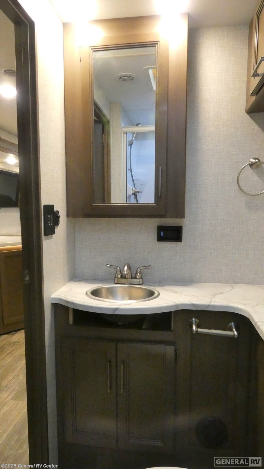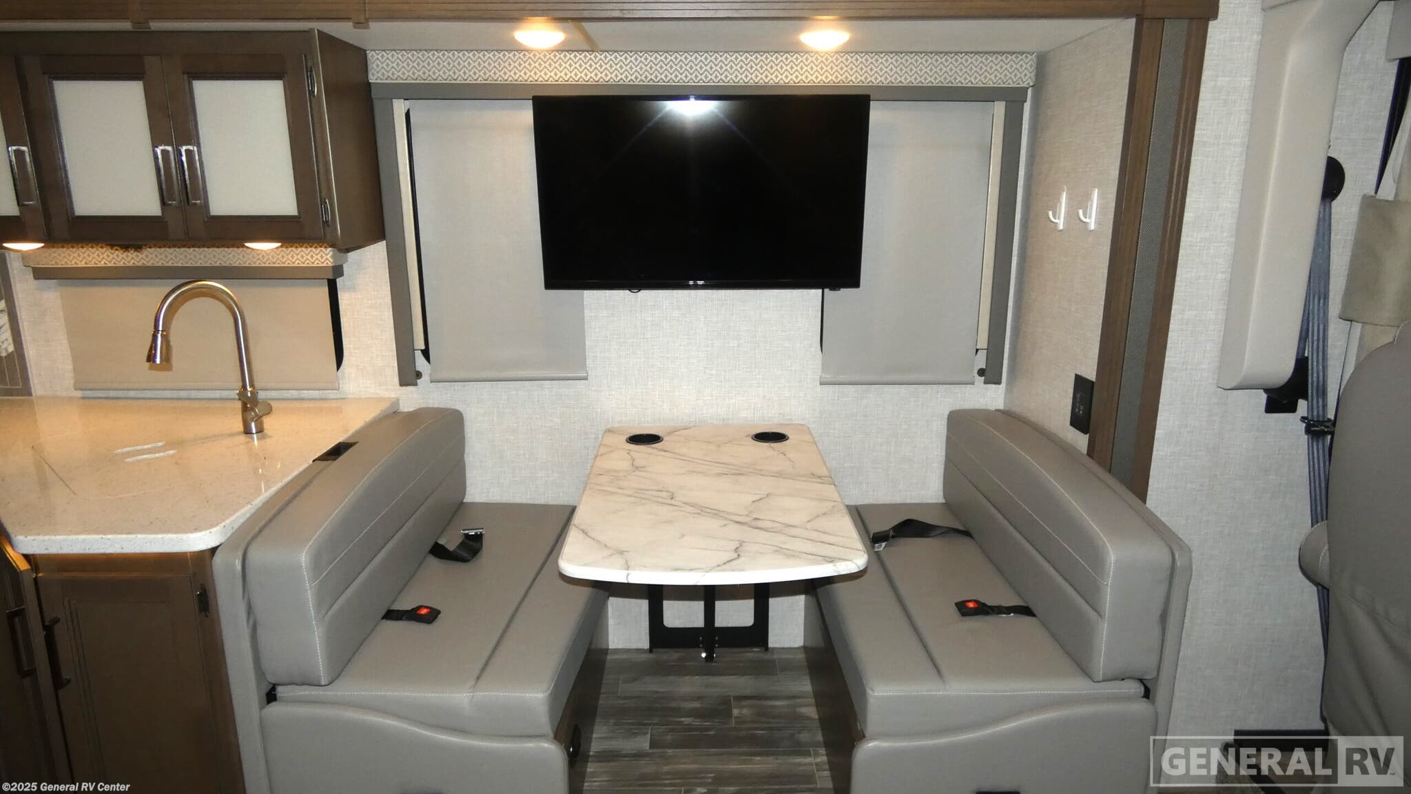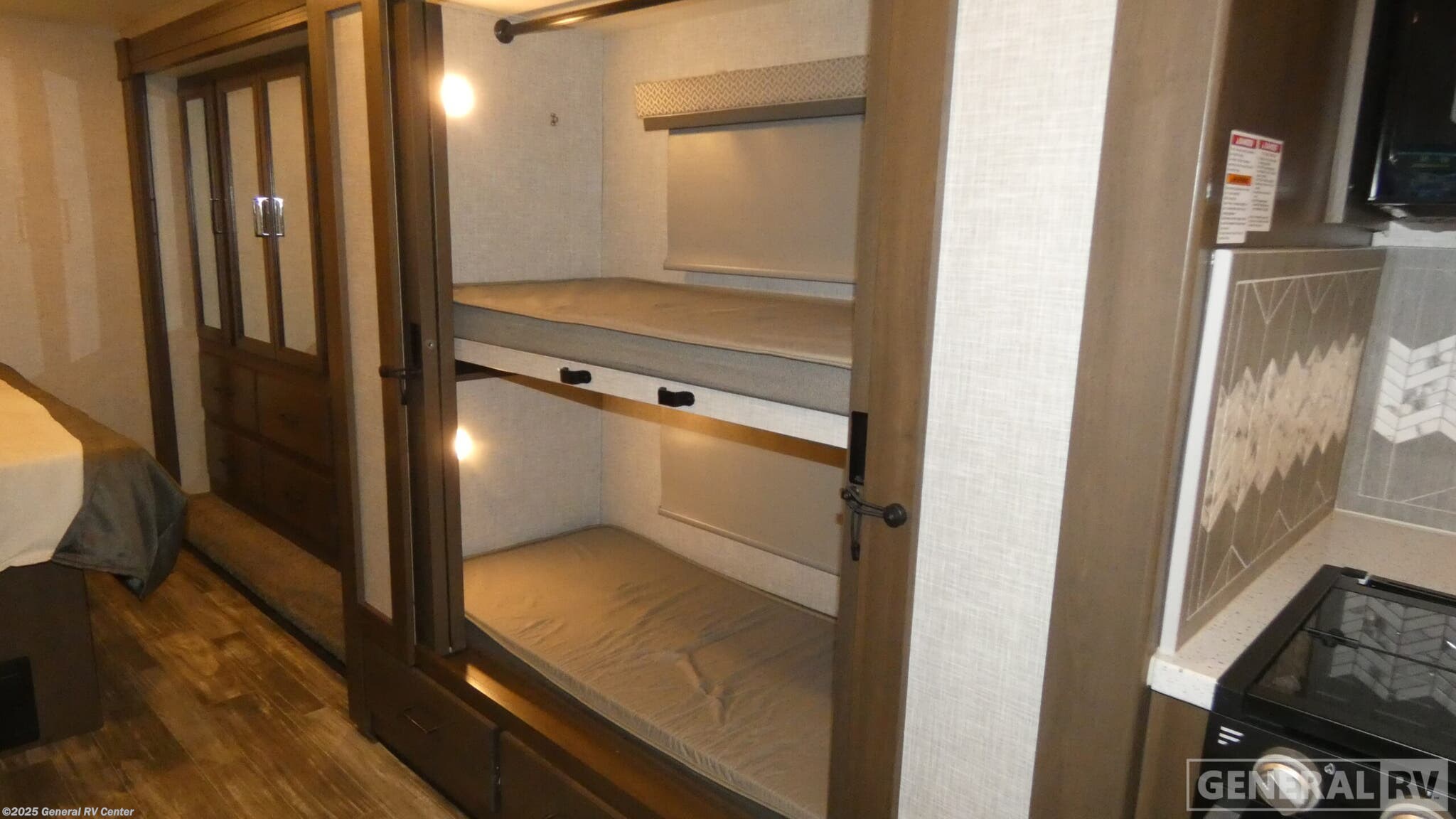 Experience the open road like never before with the 2022 Thor Motor Coach Windsport 34J. This magnificent motorhome is designed to accommodate up to 10 sleepers, making it perfect for family adventures or group getaways. The spacious interior features a king-sized bed in the rear bedroom, cozy bunk beds, a versatile dream dinette, and a comfortable sofa bed, ensuring everyone has a cozy spot to rest. The well-appointed kitchen, equipped with a full-size electric refrigerator and a three-burner cooktop, makes meal preparation a breeze, while the powered retractable awning provides a perfect outdoor space for relaxing under the stars. The Windsport 34J is built on a robust Ford F53 chassis and powered by a Triton V8 engine, delivering 350 horsepower and 468 lb-ft of torque, ensuring a smooth and powerful ride. With a towing capacity of 8,000 pounds, this RV is ready to bring along all your favorite outdoor toys. The thoughtful layout includes a center kitchen and bath, front living area, and a rear bedroom, providing a seamless flow throughout the space. Enjoy the convenience of an exterior kitchen and entertainment setup, complete with a 32" TV, perfect for outdoor gatherings. With a 50-gallon fresh water capacity and ample storage, this motorhome is ready for your next adventure. For more information or to see it in person, visit your nearest General RV dealership.