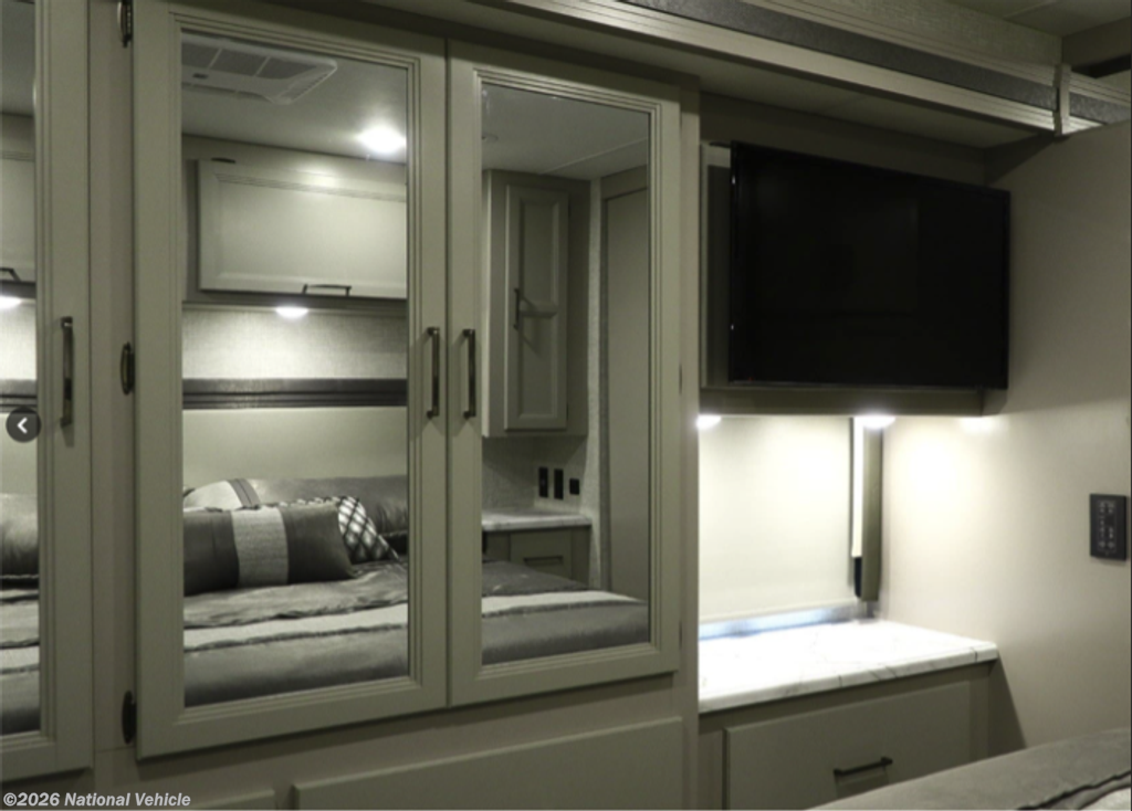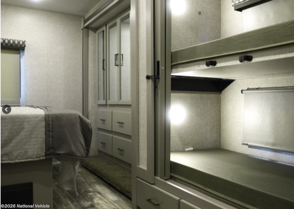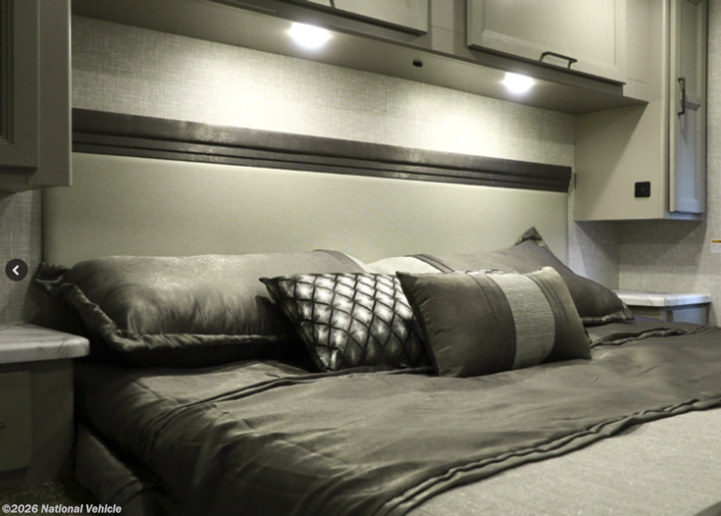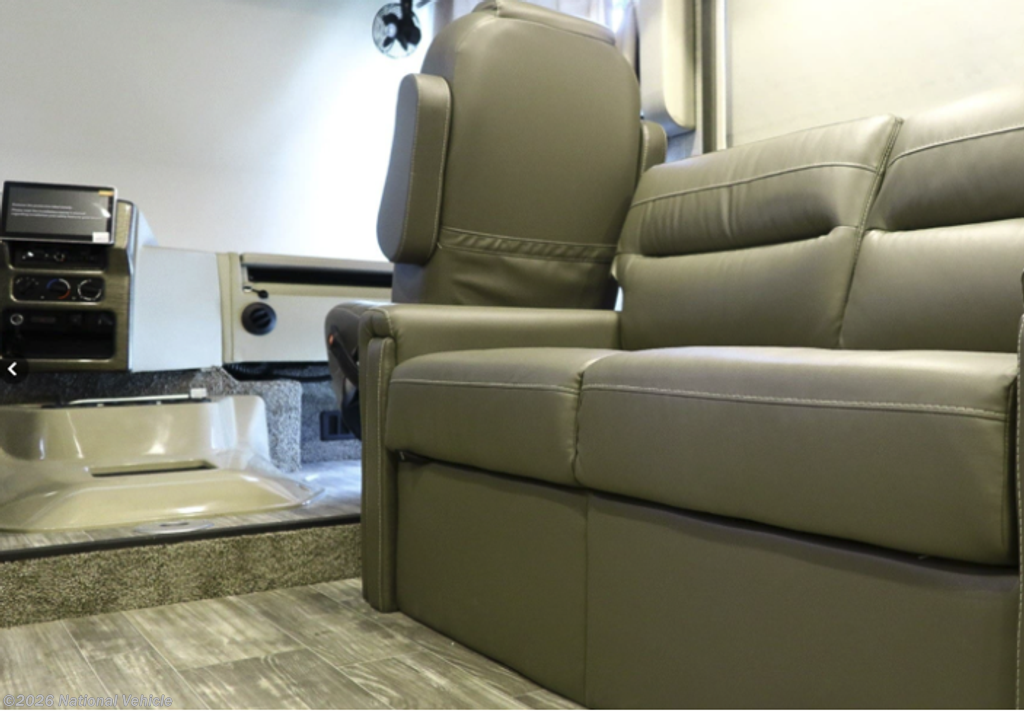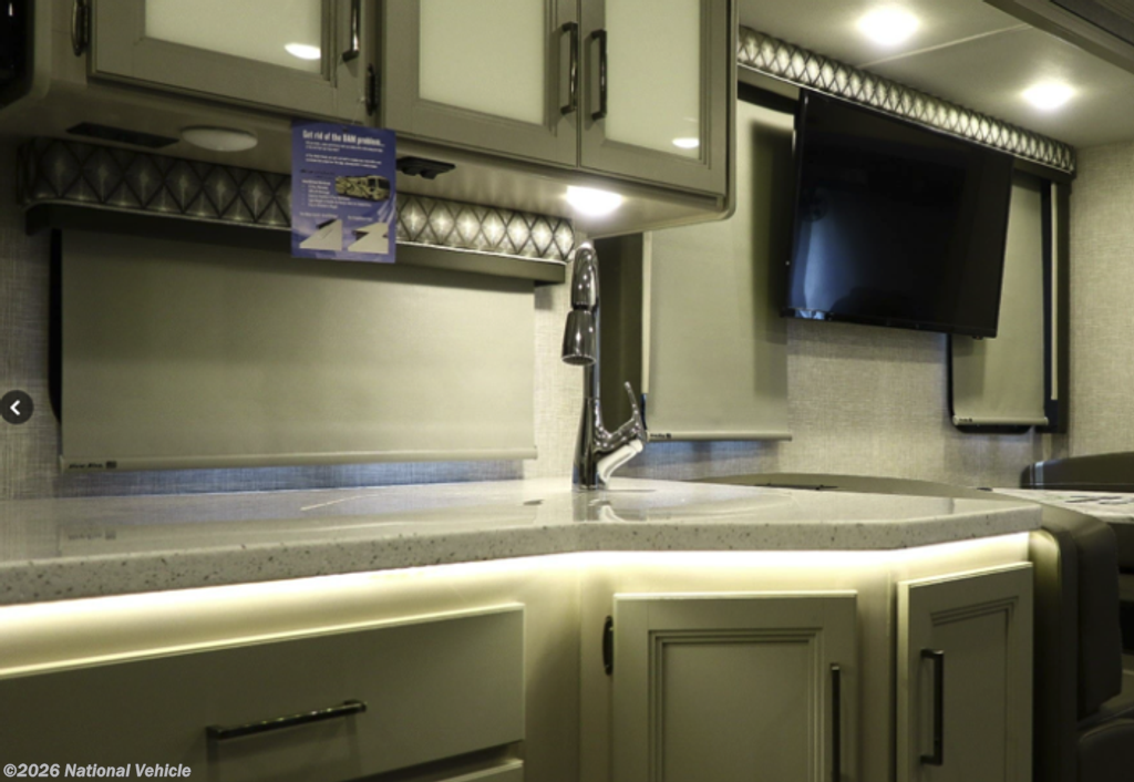 Step inside and you?ll immediately appreciate the expansive interior created by the full-length slide-out, giving the coach a residential feel with plenty of room to relax and entertain. The living area features a comfortable sofa, Dream Dinette, and multiple TVs, making it ideal for family trips or hosting guests. Large windows bring in natural light, creating a bright and inviting atmosphere throughout.