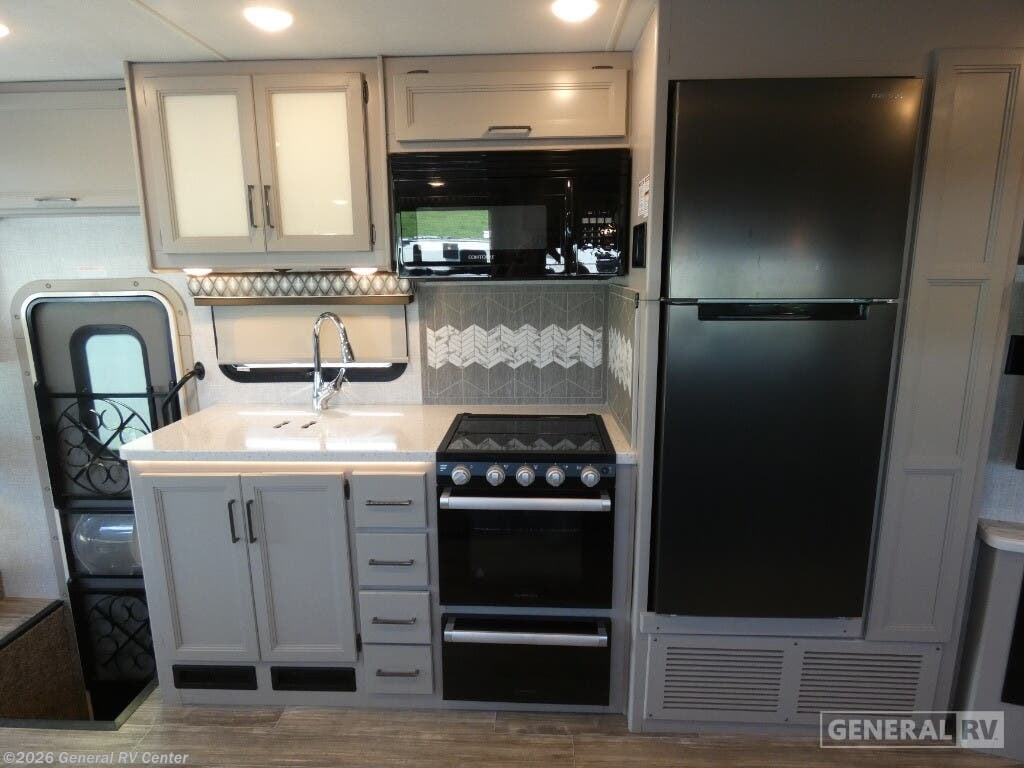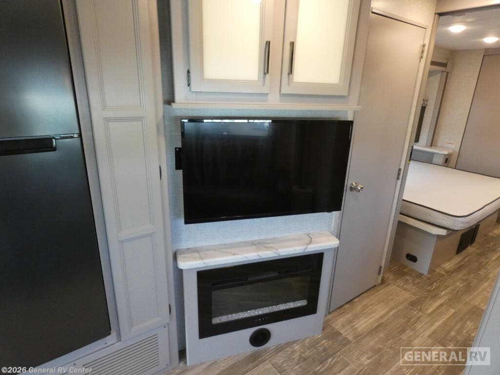 Experience the open road like never before with the 2022 Thor Motor Coach Hurricane 35M. This spacious and meticulously designed motorhome offers a luxurious home-away-from-home feel, perfect for families or groups up to eight. As you enter, you'll be greeted by a front living area that exudes comfort, featuring a versatile expanding sofa bed and a 70" Dream Dinette, ideal for dining and relaxation. The drop-down overhead bunk provides additional sleeping space, ensuring everyone has a cozy spot to rest. The fully equipped center kitchen boasts a full-size residential refrigerator and a three-burner cooktop, making meal prep a breeze. Retreat to the rear of the coach, where a king-sized bed awaits in the serene center bedroom. Ample storage, a dresser, and a 32" TV enhance the space, while the nearby bathroom offers convenience with its shower and linen closet. The Hurricane 35M is thoughtfully designed with modern amenities, including a stackable washer/dryer prep area, ensuring you're ready for any adventure. With a powerful Triton V8 engine and a Ford F53 chassis, this motorhome promises a smooth and reliable journey. The 18 ft. powered retractable awning creates an inviting outdoor space, perfect for enjoying the scenic views. For more details and to experience this exceptional RV firsthand, visit your nearest General RV Dealership.