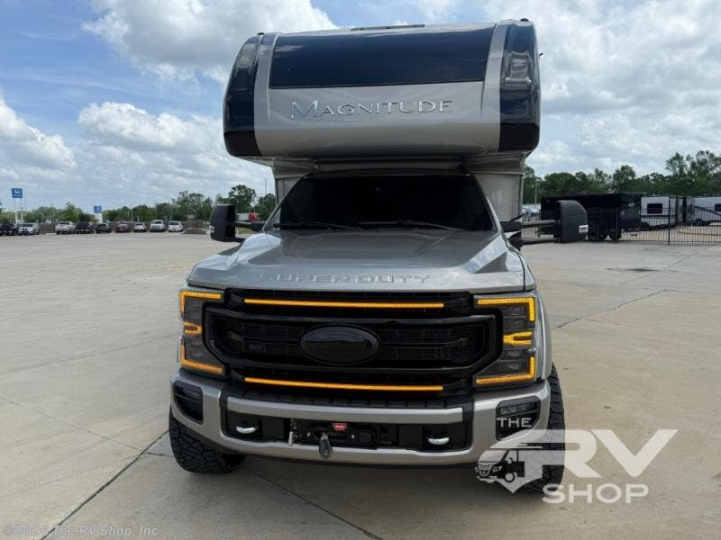 Start planning your trip across the states in this Magnitude Super C diesel motorhome that can comfortably sleep six people each night! This coach has four-wheel drive to take you anywhere you want to go. Some of your guests will love the 59" x 80" bunk above the cab, and you will appreciate having your own private bedroom with a 32" TV and an RV queen bed slide. Once you've reached your destination and set up camp, you can easily get cleaned up in the full bath, and then head to the kitchen to prepare lunch on the two-burner gas range with single induction cooktop or in the convection microwave oven. After a long day of traveling, relax on the theater seating and watch a movie on the 39" LED TV.