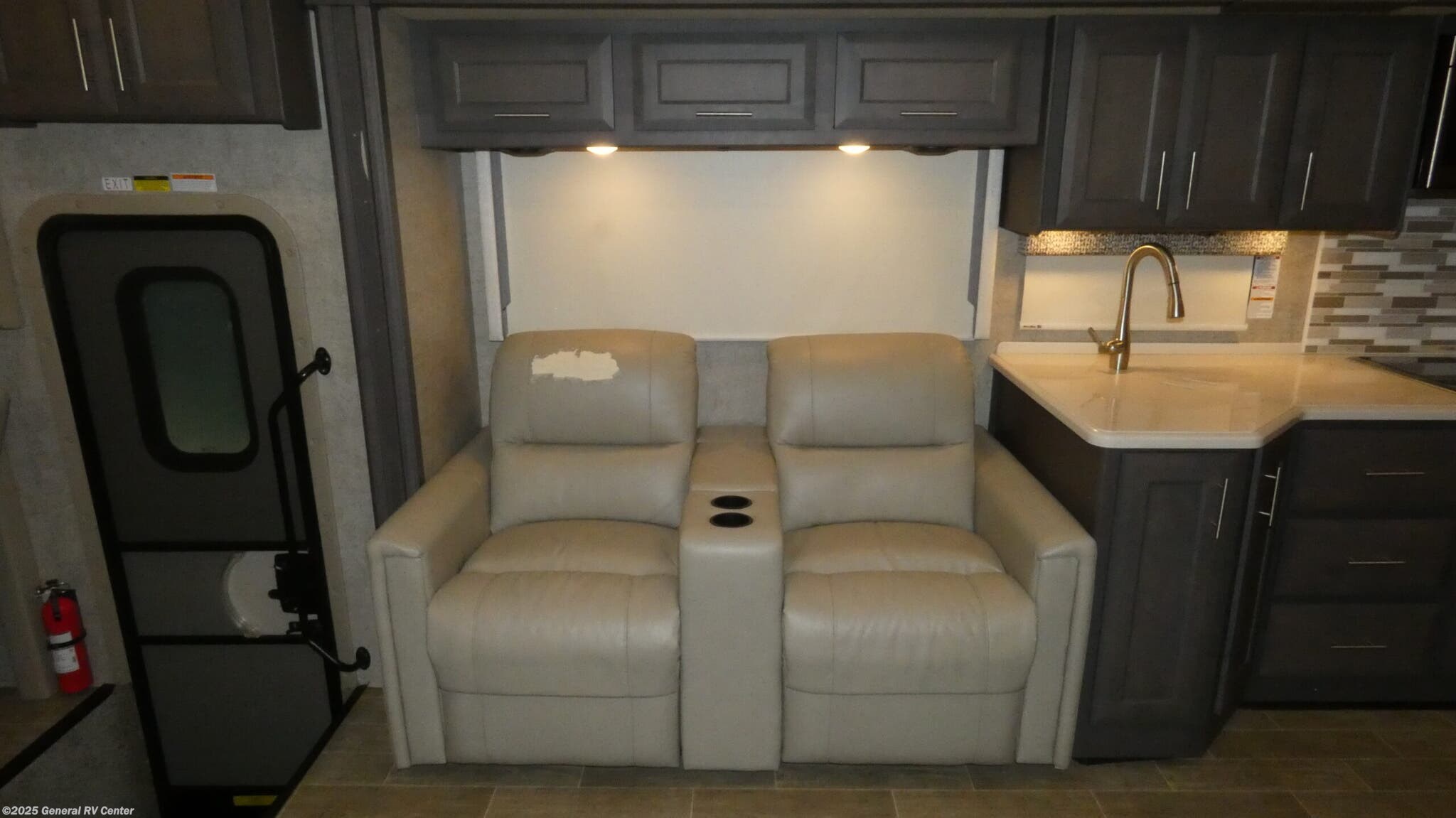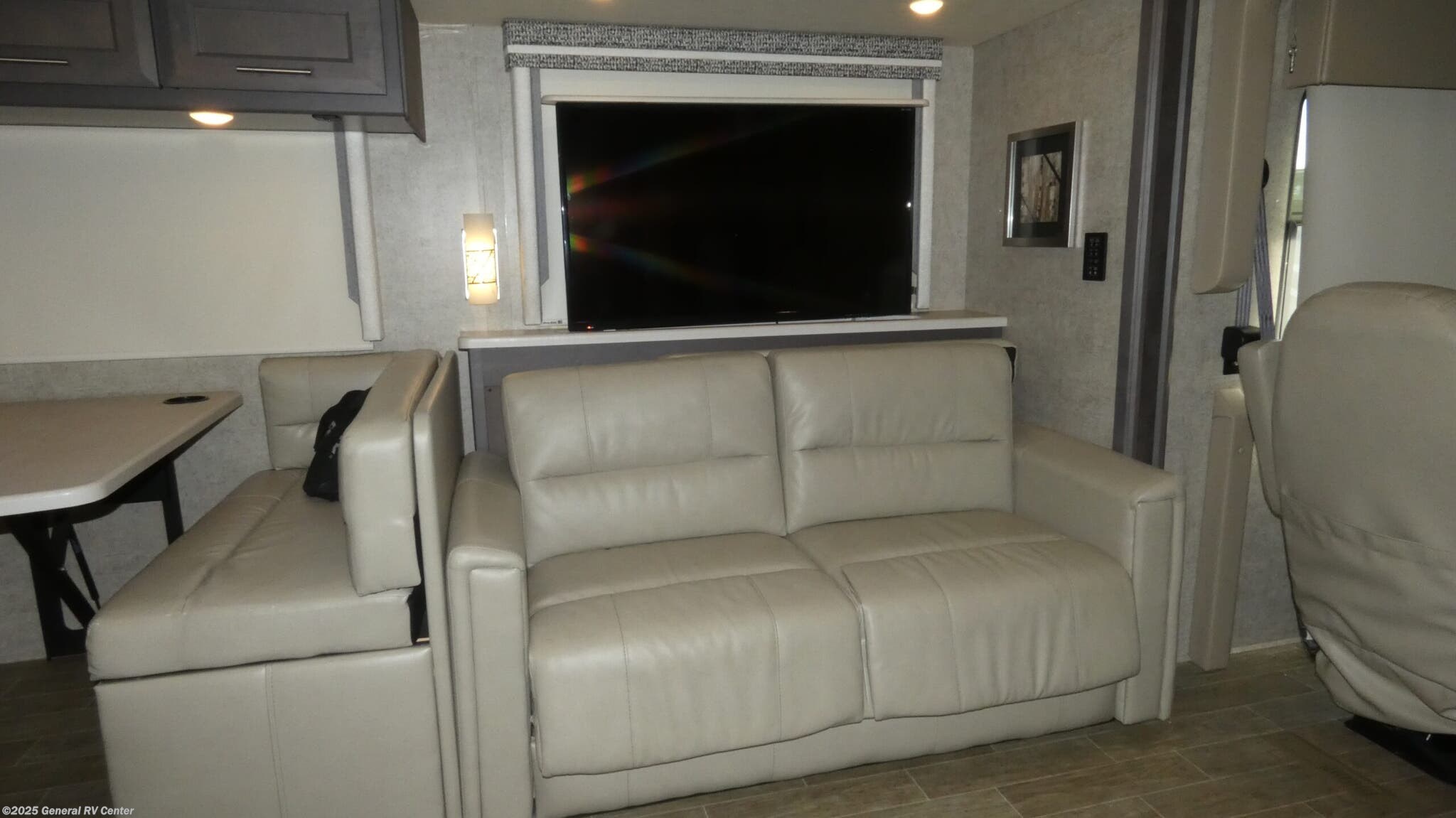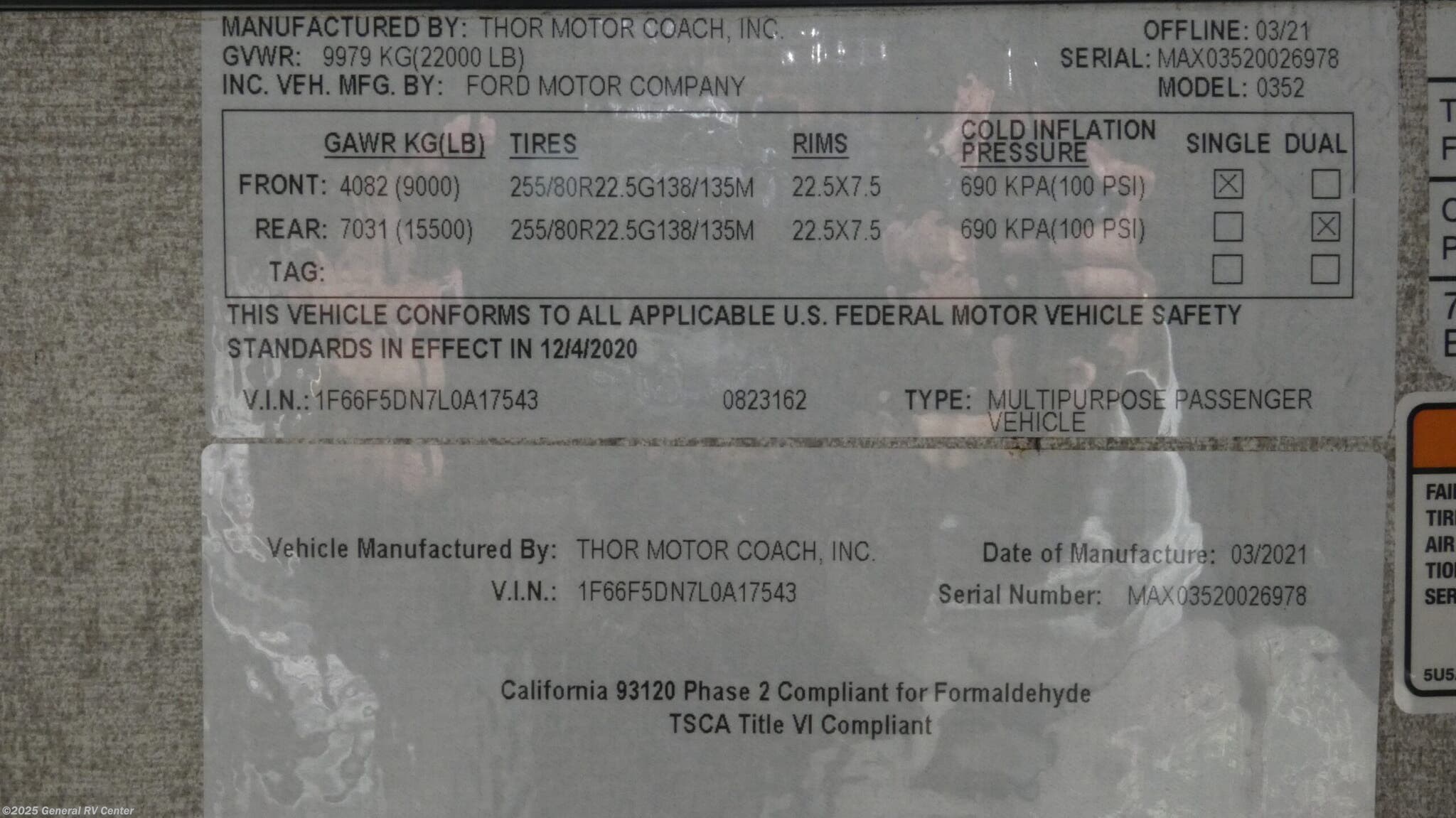 Experience the ultimate in luxury and comfort with the 2022 Thor Motor Coach Miramar 35.2. This stunning motorhome combines elegance and functionality, offering an exceptional travel experience for families and adventurers alike. With its spacious interior, you'll find a versatile layout that includes a center kitchen and front living area, perfect for entertaining or relaxing after a day of exploration. The full-size and king beds, along with convertible sleeping options, accommodate up to eight guests comfortably, ensuring everyone has a cozy place to rest. The Miramar 35.2 is designed with convenience in mind, featuring a well-equipped kitchen with convection cooking and a full-size electric refrigerator, making meal prep a breeze. The rear bedroom boasts a Tilt-A-View inclining king bed, providing a restful retreat with ample storage space. Enjoy entertainment on the go with multiple LED TVs, including an exterior 39" TV for outdoor gatherings under the 20 ft. powered retractable awning. Built on a robust Ford F53 chassis with a Triton V8 engine, this motorhome delivers 350 horsepower for a smooth and powerful ride. Whether you're embarking on a cross-country adventure or a weekend getaway, the Miramar 35.2 ensures you travel in style and comfort. For more details and to explore this incredible RV, visit your nearest General RV dealership location.