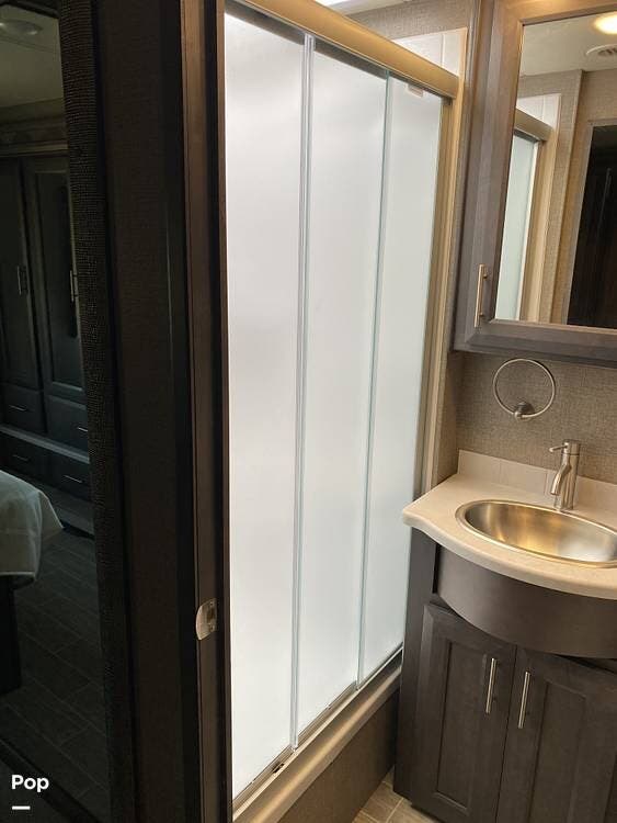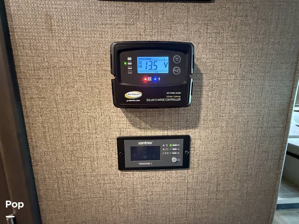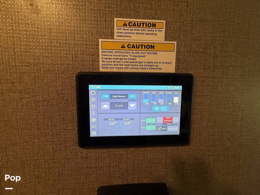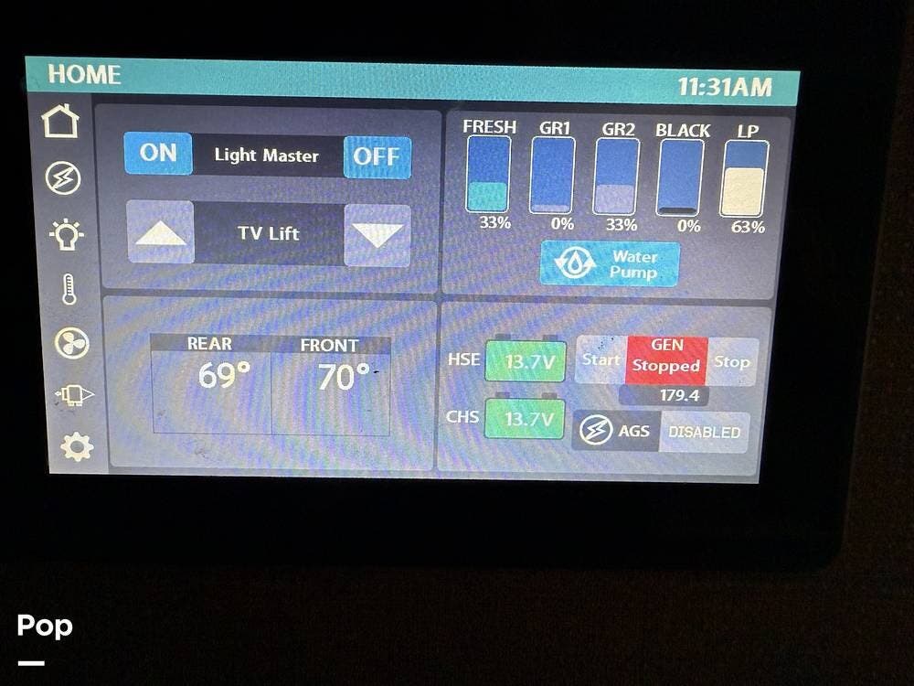 The unit also features an automatic Generator Start function during dry docking, which keeps the house and chaser batteries charged. Additionally, it includes a phone app that allows you to operate the RV's features remotely.