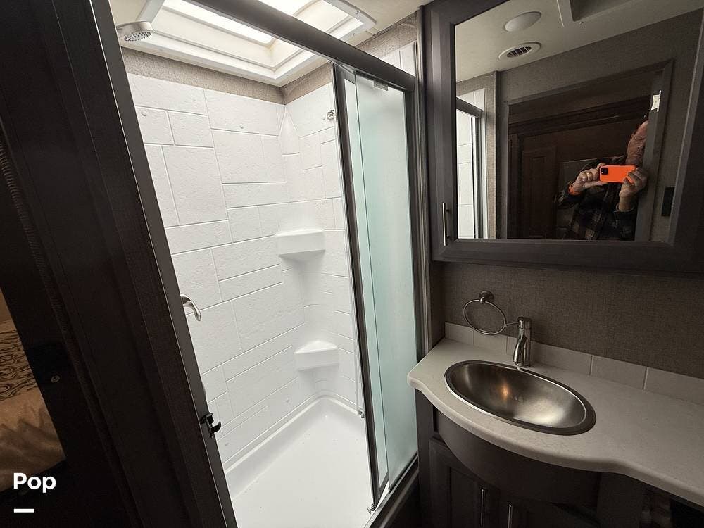 Other features included are a washer and dryer (stackable), an Onan 5.5kW generator, an outside TV and awning, and a propane hookup for a grill.