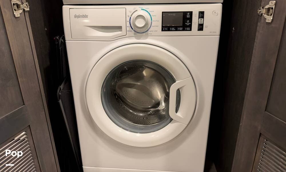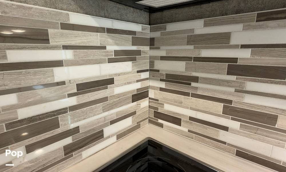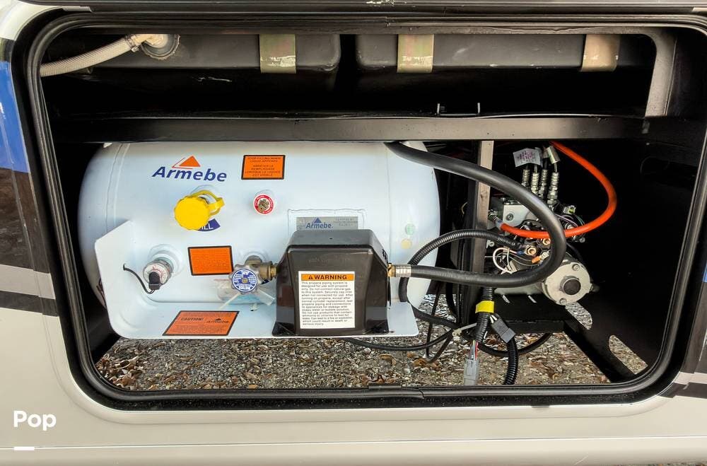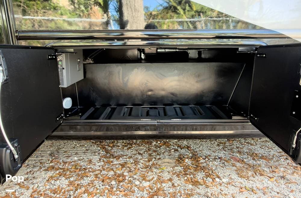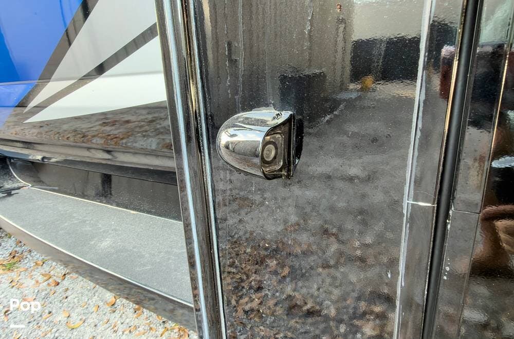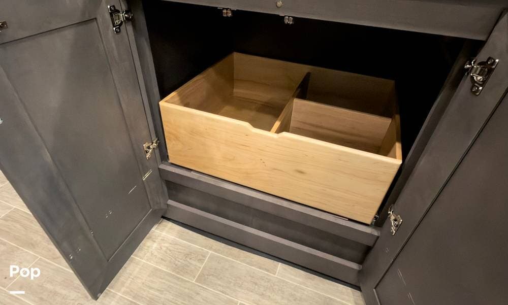The exterior is the Lake Powell full body paint that is very glossy, and it's sitting on aluminum wheels. Tons of storage underneath, plus outdoor lighting and entertainment( exterior TV).