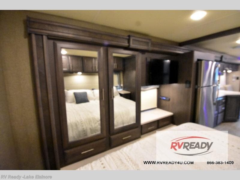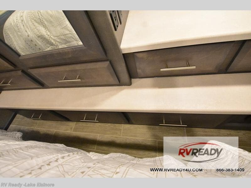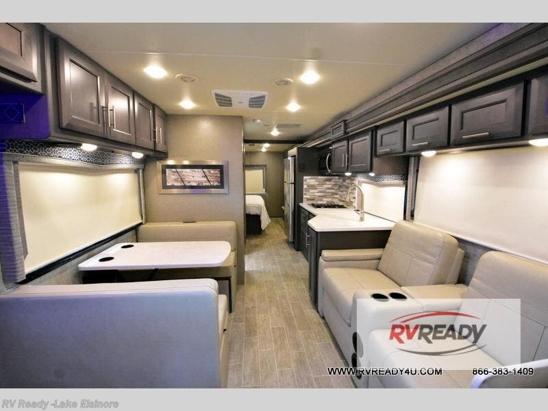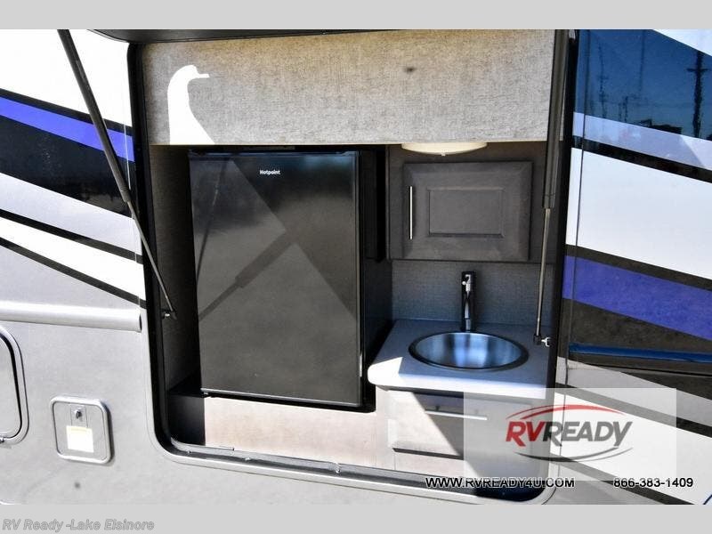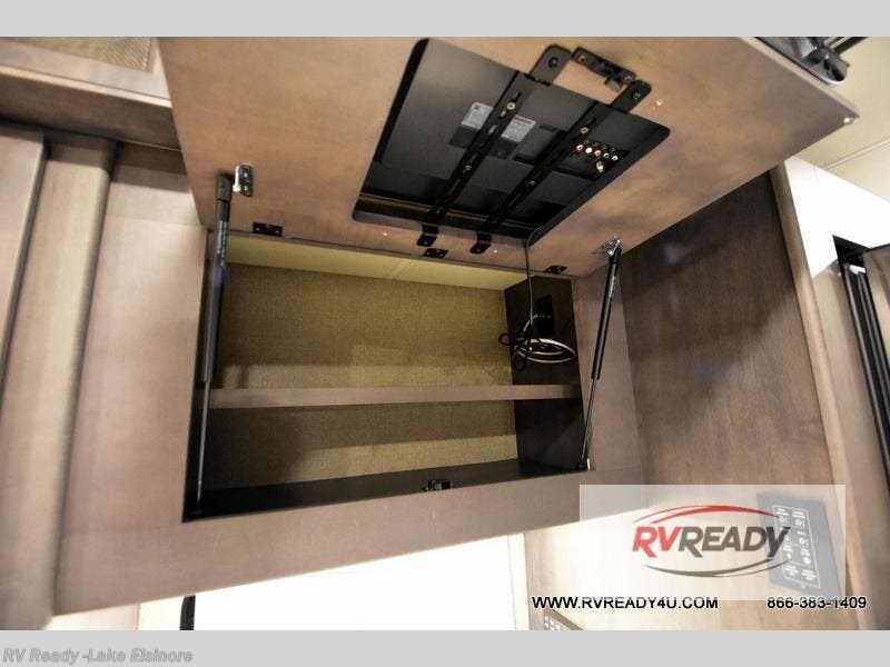 You will love every minute spent in this spacious motorhome. Once you arrive at your destination, relax on the 68" sofa bed while you watch a show on the 39" TV. There is also a Dream Dinette that will be perfect for a quick card game before you start dinner on the outdoor kitchen. If the weather isn't cooperating you'll find a two burner induction cooktop indoors, as well as a convection microwave. The rear private bedroom includes a Tilt-A-View inclining king bed so you can easily stay up and finish your book, and there is a 32" bedroom TV if you just want to cozy up with movie. This model also includes plenty of storage space, including a large bedroom wardrobe and exterior roto-cast storage compartments for camp gear!