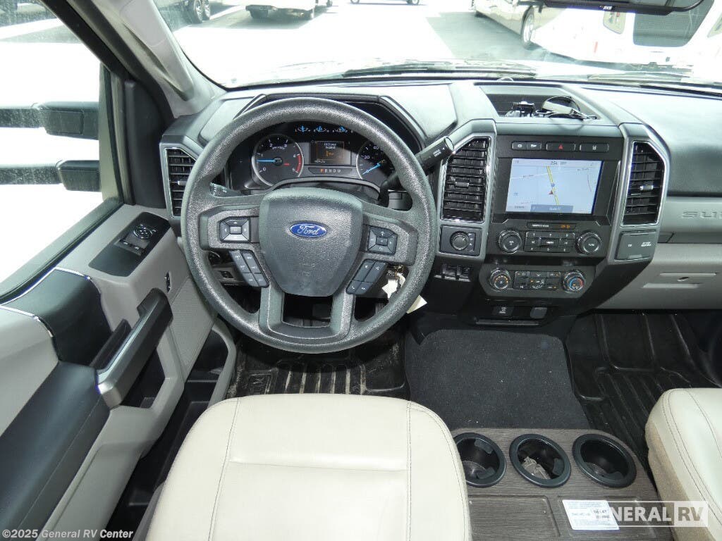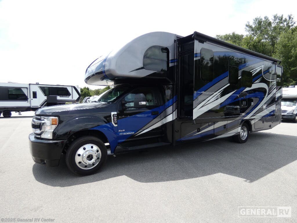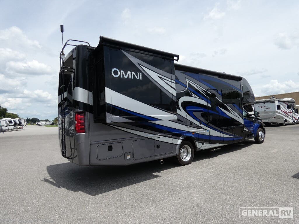 Experience the perfect blend of luxury and adventure with the 2022 Thor Motor Coach Omni XG32. This stunning RV, built on a robust Ford F550 chassis and powered by a mighty Power Stroke V8 engine, promises a seamless journey with 330 horsepower and 825 lb-ft of torque. Its sleek exterior, complemented by a 14 ft. powered retractable awning, sets the stage for outdoor relaxation, while the interior offers an inviting space for up to eight guests. The cab-over bunk and two queen beds ensure everyone sleeps comfortably, with a convertible option for additional sleeping arrangements. Inside, you'll find a thoughtfully designed layout featuring a center kitchen equipped with a full-size electric refrigerator and convection cooking, making meal prep a breeze. The front living area boasts a 70" dream dinette and theater seating, perfect for unwinding after a day of exploration. A center bath with a 32" x 32" shower offers convenience, while the rear bedroom provides a private retreat. With ample storage, including a pantry and wardrobe, and a diesel fuel capacity of 40 gallons, the Omni XG32 is ready for your next adventure. For more details, visit your nearest General RV dealership.