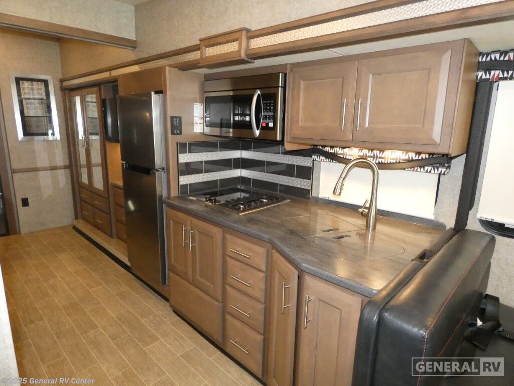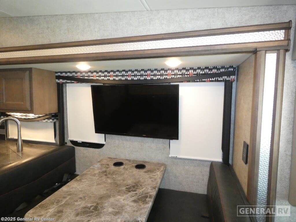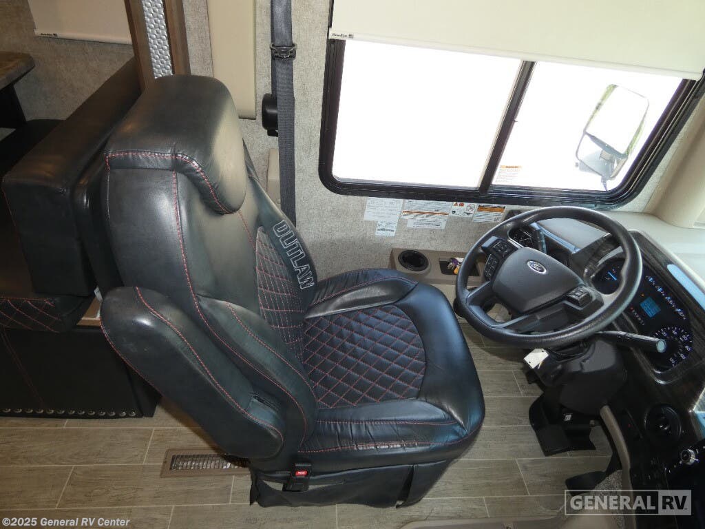 Step into the 2022 Thor Motor Coach Outlaw 38MB, a versatile and stylish motorhome that combines luxury with practicality. Designed on the robust Ford F53 chassis and powered by a 350-horsepower engine, this RV promises smooth travels with a towing capacity of up to 8,000 pounds. Its impressive length of nearly 40 feet encompasses a thoughtfully laid-out interior, featuring a front living area perfect for relaxation, complete with a 39-inch TV and a comfortable sofa bed. The center kitchen is equipped with a full-size electric refrigerator and convection cooking capabilities, ensuring you can prepare meals with ease while on the road. Accommodating up to 12 sleepers, the Outlaw 38MB offers a variety of sleeping options, including two queen beds and convertible spaces that transform into cozy resting areas. The garage area doubles as a bunk space, providing additional versatility. A standout feature is the patio deck, which offers a delightful outdoor space for entertainment or relaxation. With a powered retractable awning and a fresh water capacity of 150 gallons, this motorhome is ready for extended adventures. For more details or to experience this remarkable RV in person, visit your nearest General RV Dealership.