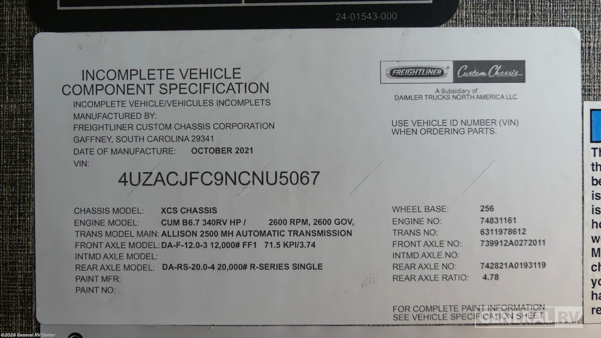 - VIN4UZACJFC9NCNU5067