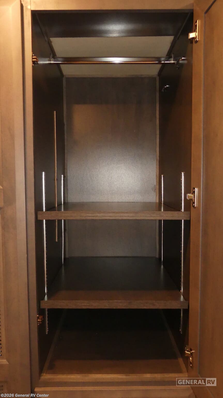 Thor Motor Coach Palazzo Class A diesel motorhome 37.4 highlights: Pull-Out Countertop Triple Slides Inclining Theater Seats Exterior 39" TV Oversized Shower with Glass Door You can't beat the luxury you'll find in this motorhome that can sleep seven each night. You'll love waking up each day on your Tilt-A-View inclining king bed, and there is a full-length closet to store all your clothes. The stacked washer and dryer will allow you to start a load of laundry before you head to the kitchen for breakfast. Whether you're making eggs on the electric induction cooktop, or making oatmeal in the convection microwave, you're sure to find everything you need in this Palazzo kitchen. The main living area will be a spot everyone will love to gather in, especially with a Dream Dinette, a trifold sofa, plus inclining theater seats. There is an overhead bunk the little ones will love, and the 40" LED HDTV and fireplace will make this whole area feel more like home! Each journey you take with a Palazzo Class A diesel motorhome by Thor Motor Coach is made smooth thanks to the Air-Ride suspension, the Sachs shock absorbers, and the Atlas foundation. You'll enjoy hassle-free set up thanks to the Rapid Camp + multiplex wiring control system, and there is a Winegard ConnecT 2.0 WiFi/4G/TV antenna to keep you connected to the outside world as you're away from home. The exterior of the Palazzo features lighted storage compartments and a basement pass-through, a 40" LED TV, and invisible front paint protection to withstand the elements. You will fall in love with the interior that includes Studio Collection cabinetry, luxury vinyl tile flooring, leatherette furniture, solid surface countertops, plus many more comforts!