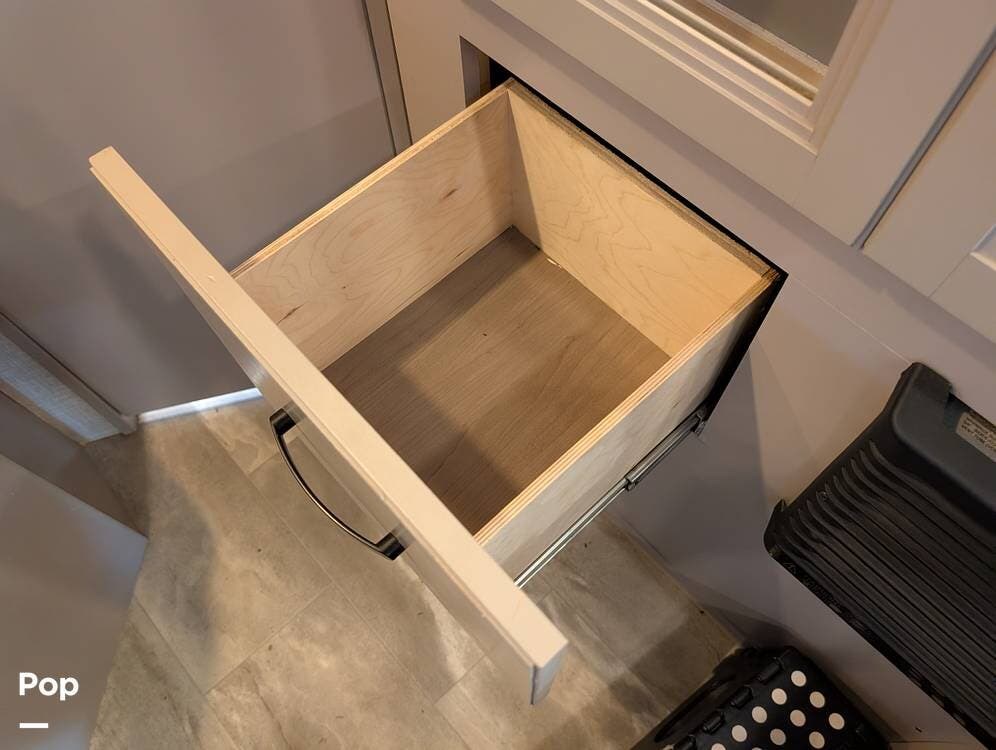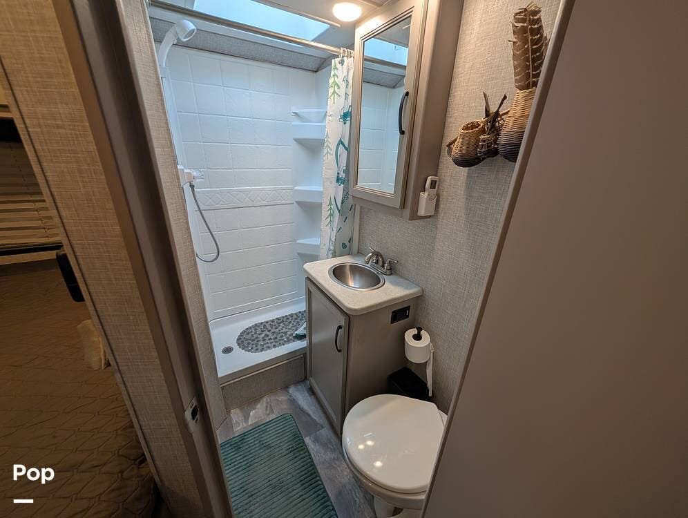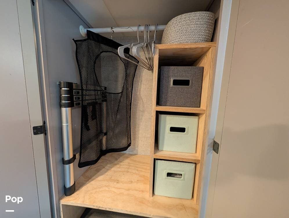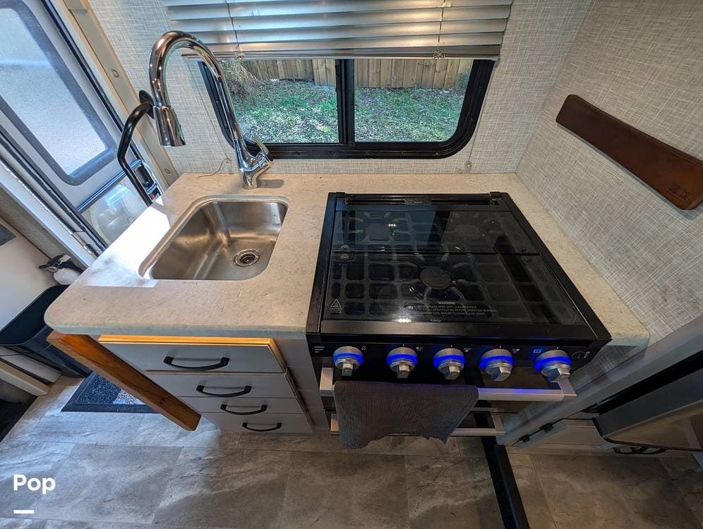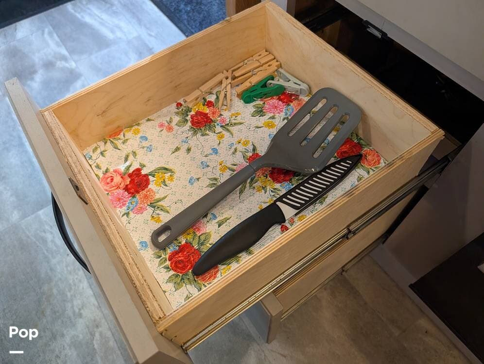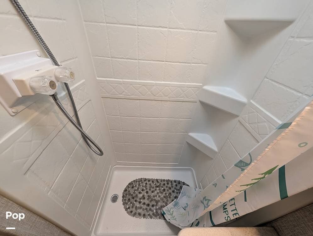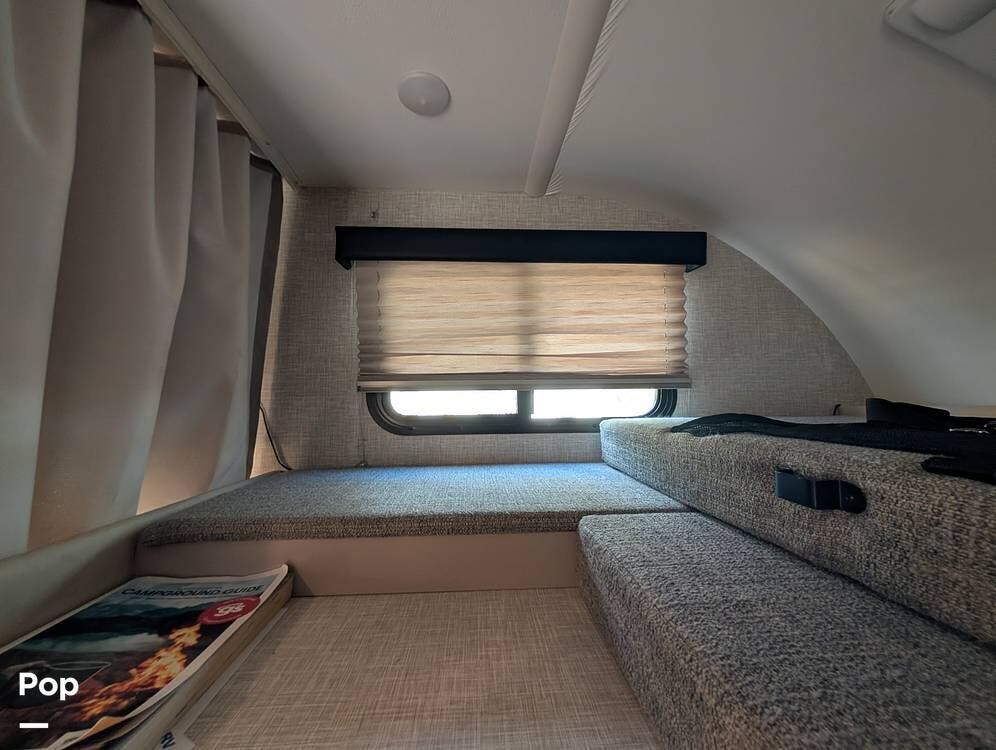 Inside, the smart floorplan maximizes both comfort and space. The cab-over bunk provides generous sleeping space, the dinette converts into an additional guest bed, and the rear corner bed has been upgraded with a custom premium mattress for a restful night's sleep.