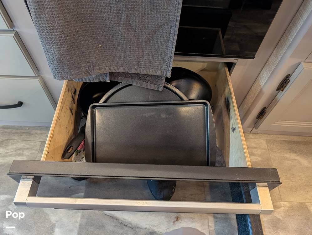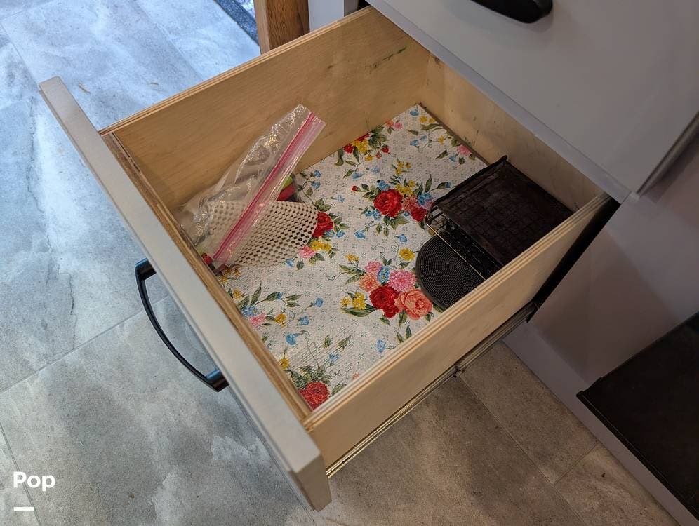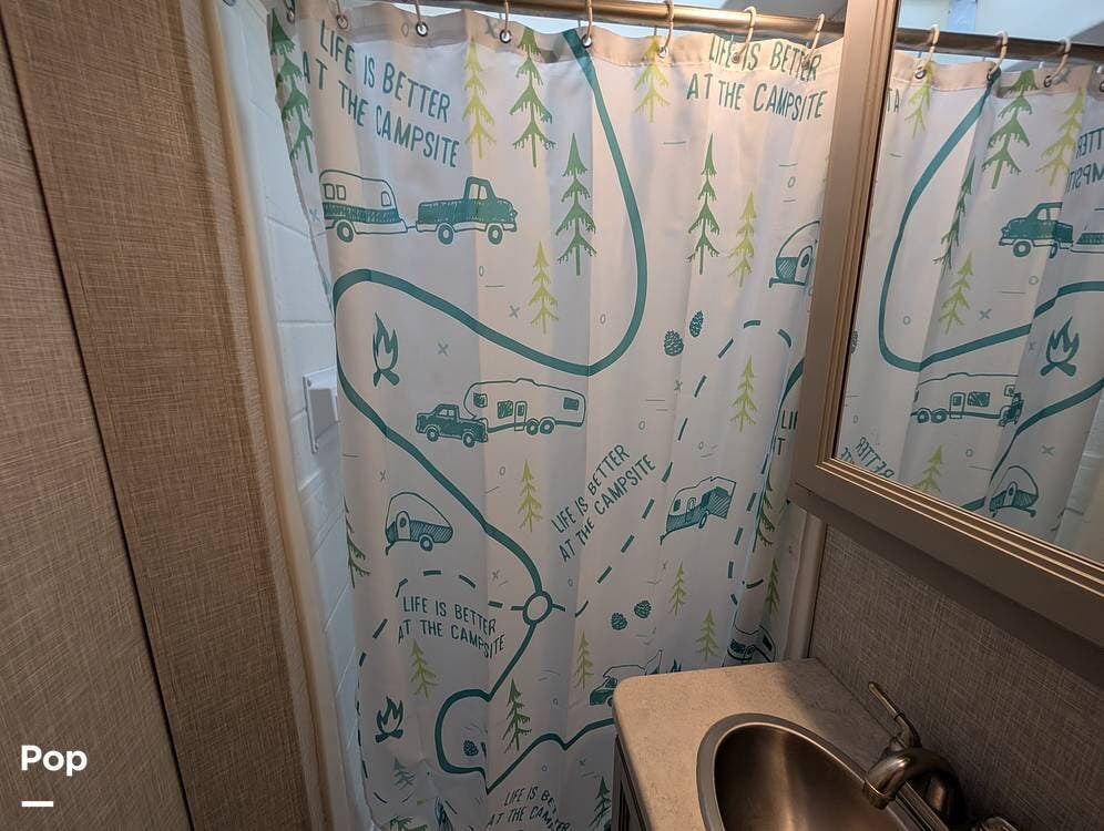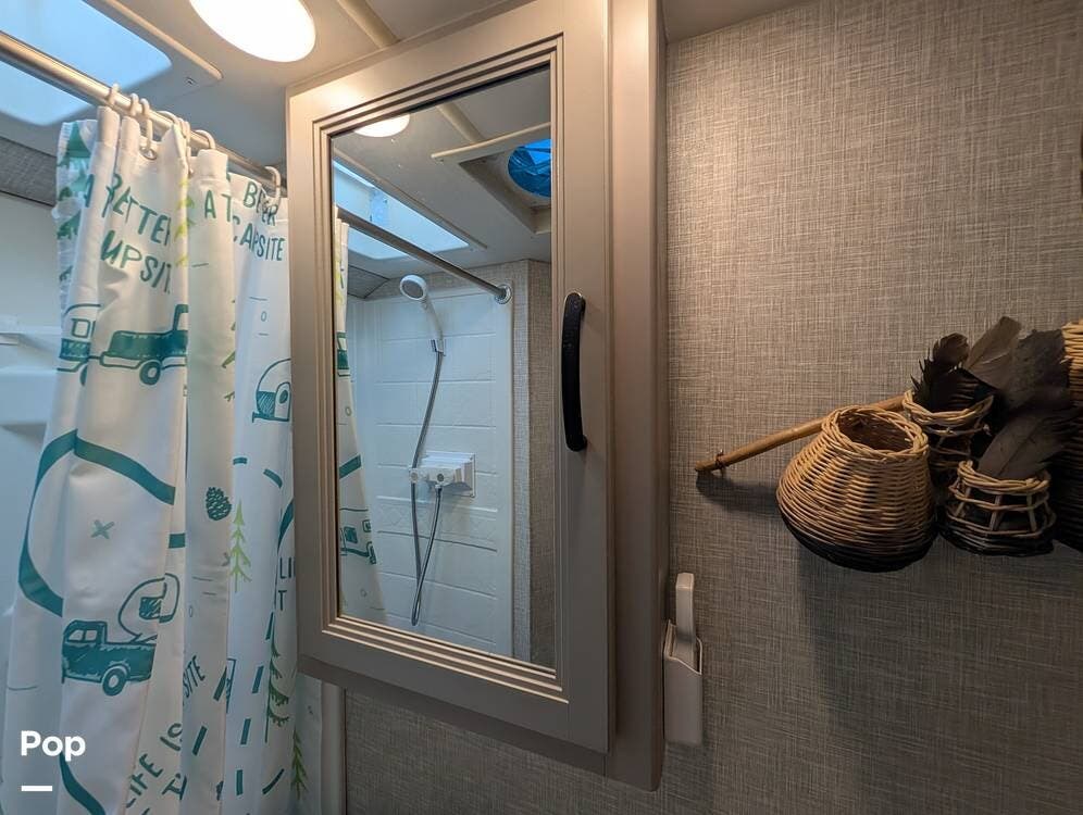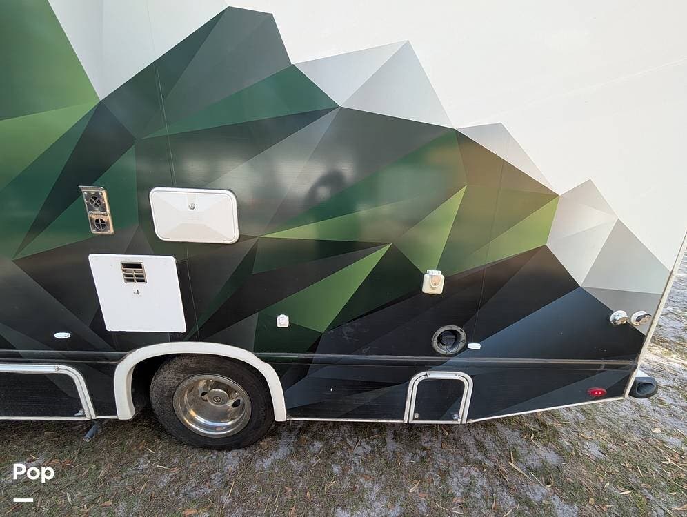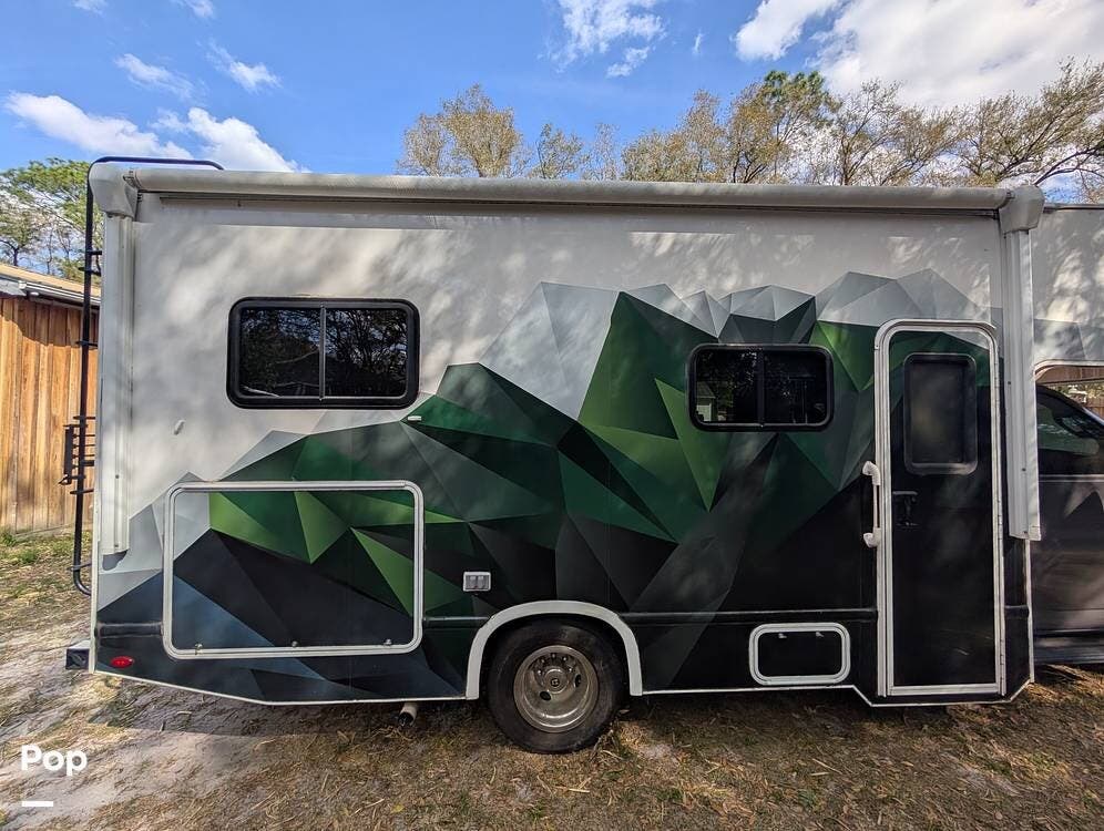 The custom exterior wrap gives this motorhome a distinctive, head-turning look that truly sets it apart. A power awning with LED lighting and exterior storage completes the package.