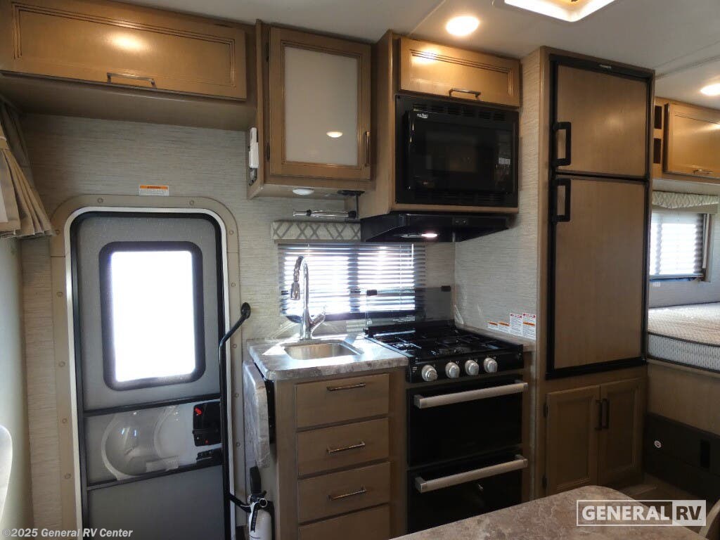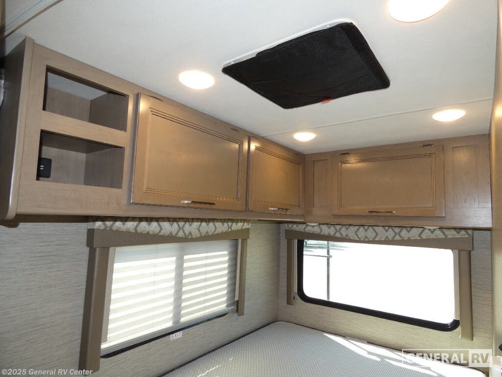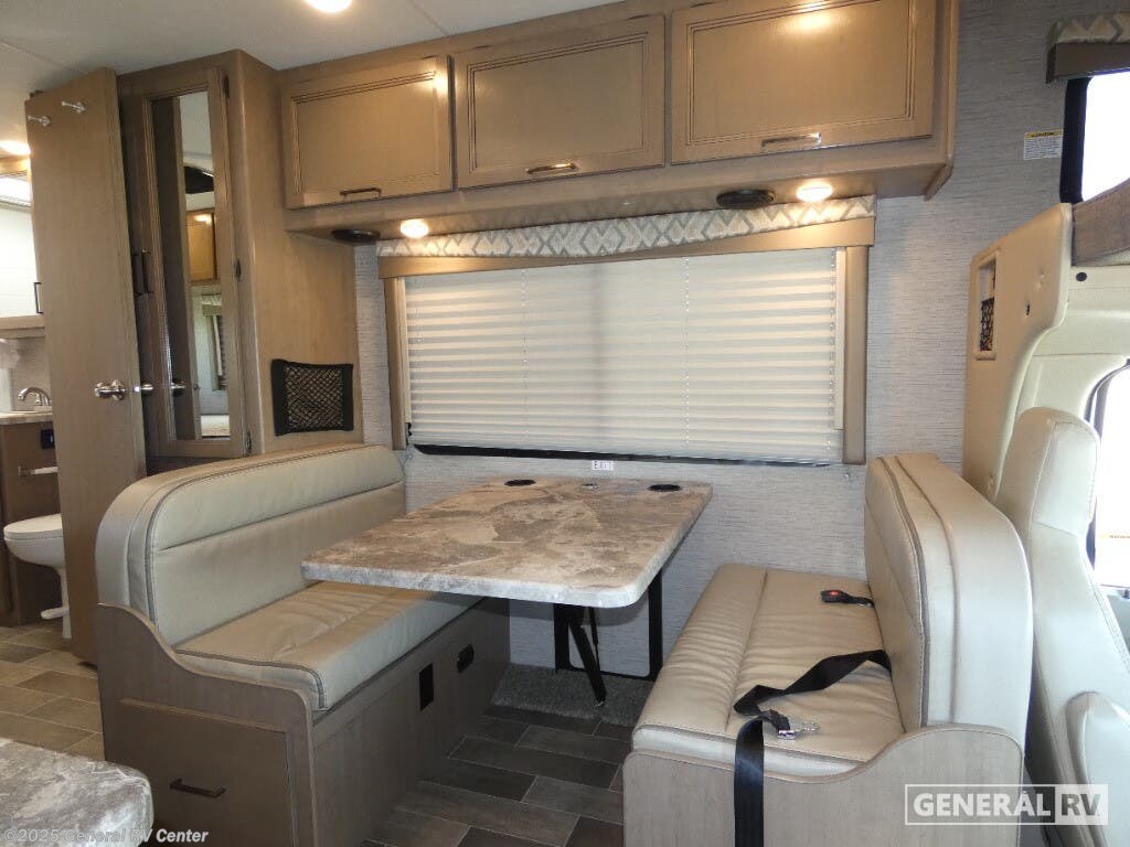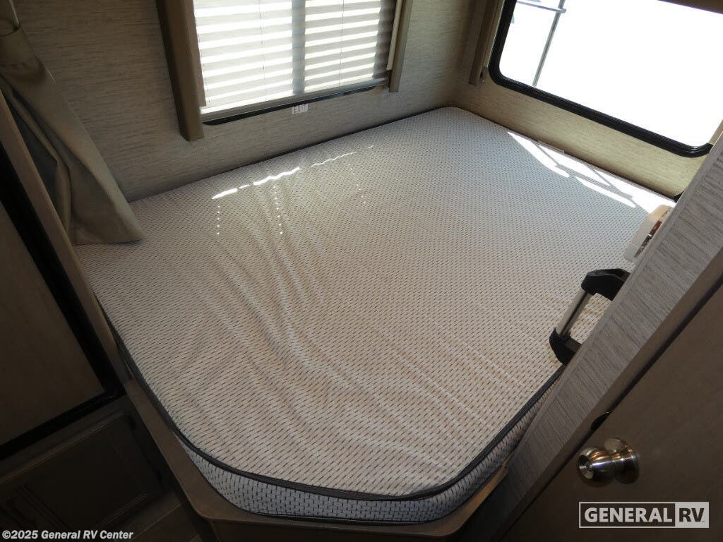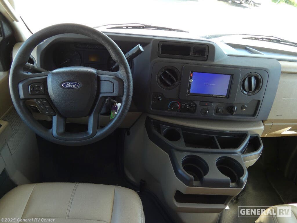 Discover the 2022 Thor Motor Coach Quantum SE SE22, a compact yet spacious Class C motorhome designed for the adventurous spirit. With a robust Ford E-Series chassis and a powerful 7.3L V8 engine, this RV is ready to take you on the road with ease and confidence. At 24 feet in length, it offers a perfect blend of maneuverability and comfort, making it ideal for both seasoned travelers and those new to the RV lifestyle. The Quantum SE22 comfortably sleeps up to five, featuring a cozy queen bed, a versatile cab-over bunk, and a 76” dream dinette that easily converts into additional sleeping space. Inside, you'll find a well-appointed kitchen equipped with a three-burner cooktop and a double-door gas/electric refrigerator, perfect for whipping up meals on the go. The 39” TV on a manual swivel ensures entertainment is always at your fingertips. The 15-foot power awning with integrated LED lighting extends your living space outdoors, providing a perfect spot to relax and enjoy the scenery. With a fresh water capacity of 50 gallons and an Onan QG 4000 generator, the Quantum SE22 is ready for extended adventures. For more details, visit your nearest General RV dealership.