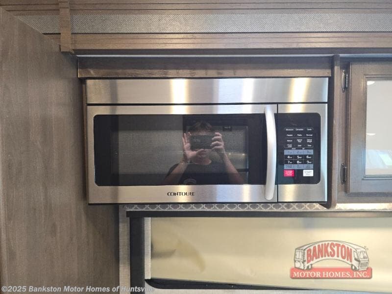 Deciding to go full-time in an RV is made easy with this coach! From the full-wall slide out offering plenty of space in the main living and kitchen area up front and all the way back to the rear private bedroom, you will not have to squeeze in to get to any space. The cab over bunk offers sleeping accommodations for the kids or grandkids as well as the furniture once prepare for bedtime, and you will sleep like a queen on your own bed. There is a full bathroom with a radius shower, plenty of closets for your clothing, and the kitchen offers a two-burner cooktop and single induction cooktop along with a convection microwave and double door refrigerator to be able to make any meal. And when you want to watch your show, there are two TVs inside and an exterior 32" TV to enjoy while relaxing under the power awning.