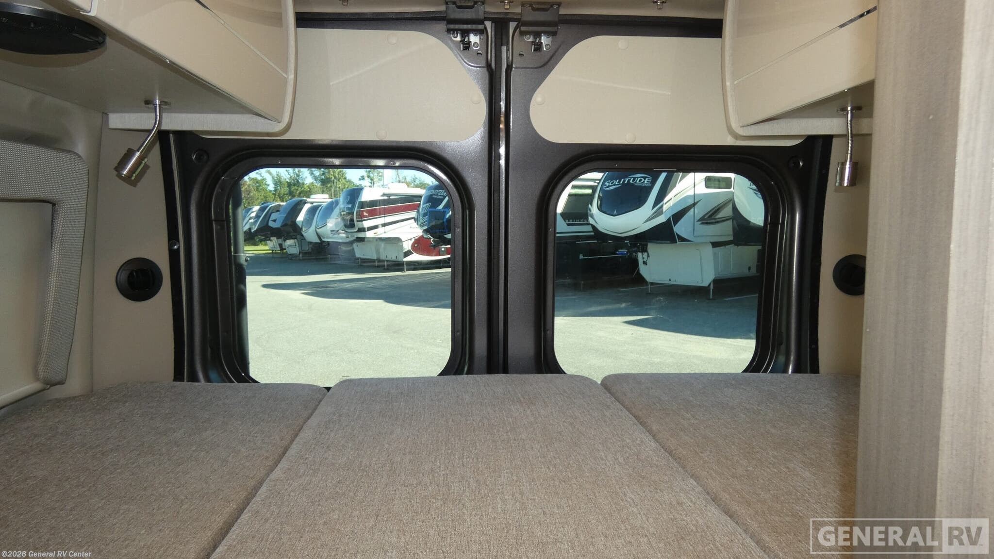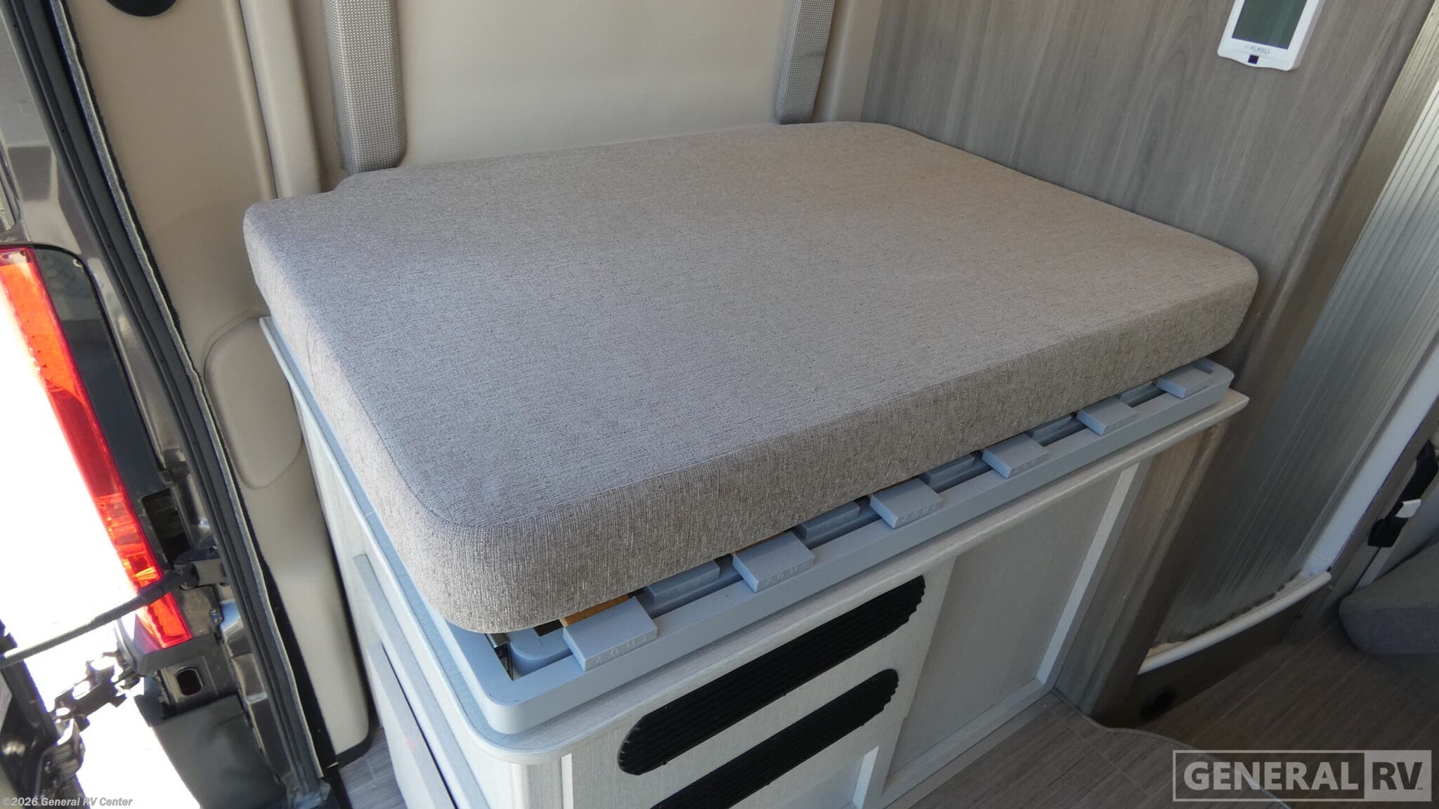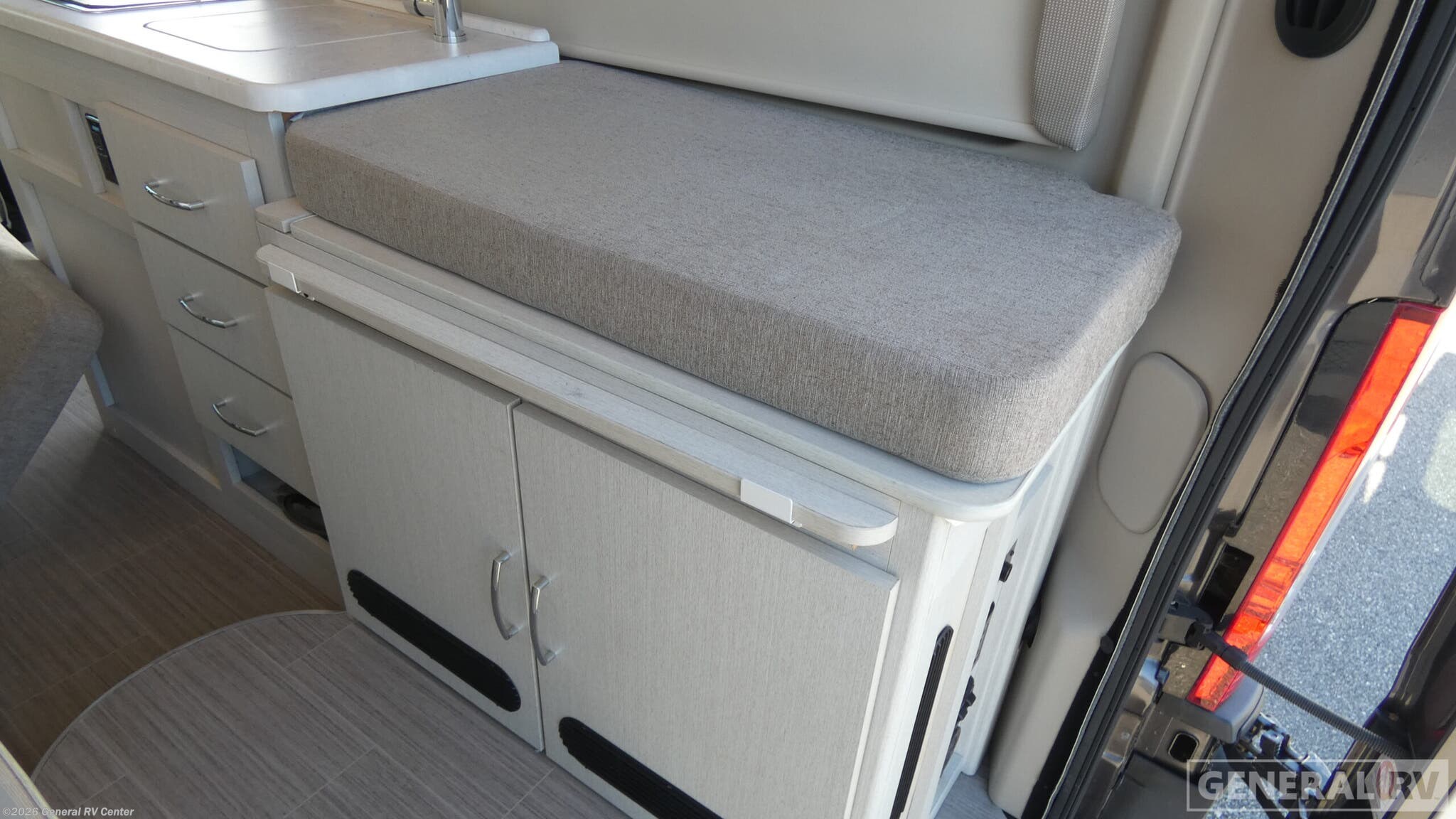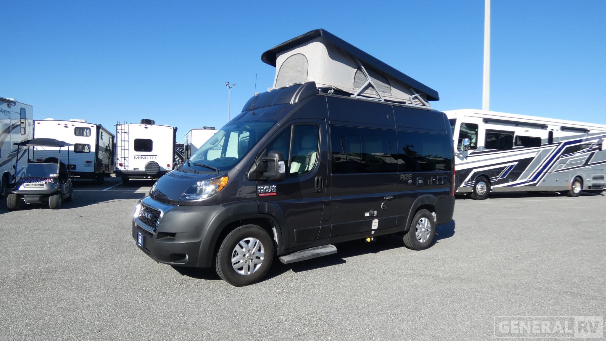 **Thor Motor Coach Rize Class B gas motorhome 18A highlights:** * Wet Bath * Pull Out Bed * Stainless Electric Refrigerator * Swivel Captain's Chairs Head to your favorite destinations with your favorite person in this coach! Easily travel to tailgates or school events and have everything you need accessible, as well as for those overnight road trips where you can stop and relax at anytime, and stay for as long as you like. The two burner cooktop and microwave oven makes cooking easy, and the wet bath is a convenience that you are sure to appreciate. The dinette offers a comfortable place to enjoy your meals and is next to an opening window so you can have a fresh breeze while you eat too. You will find plenty of storage for your things with several overhead cabinets, pull-out drawers, as well as storage beneath the 72" x 39" pull-out bed in back which creates sleeping for two. The Rize Class B gas motorhome by Thor Motor Coach allows you to experience the camping lifestyle in a compact RV packed with convenient features. There is a 3.6L Pentastar V6 engine and 276 HP to power your excursions, and the outdoor enthusiast will love the 190W solar panel and solar charge controller. Each model includes residential vinyl flooring, TechnoForm Euro-style upper cabinet doors, and premium window privacy shades. You'll find pressed countertops in the kitchen and a glass protective cover and task lighting above the cooktop to easily cook meals each day. The keyless entry system adds to the convenience found throughout these models, plus there is an exterior LP connection if you want to hook up your own grill and a rear water sprayer to wash off your hiking boots.