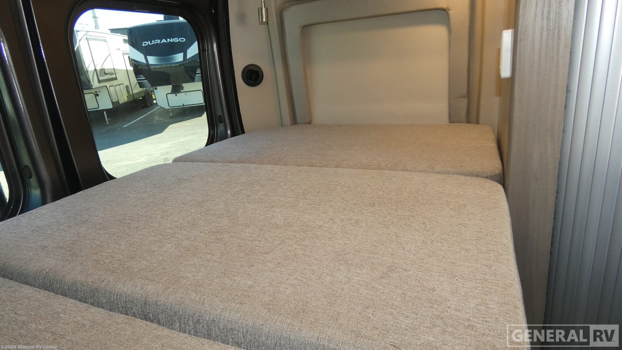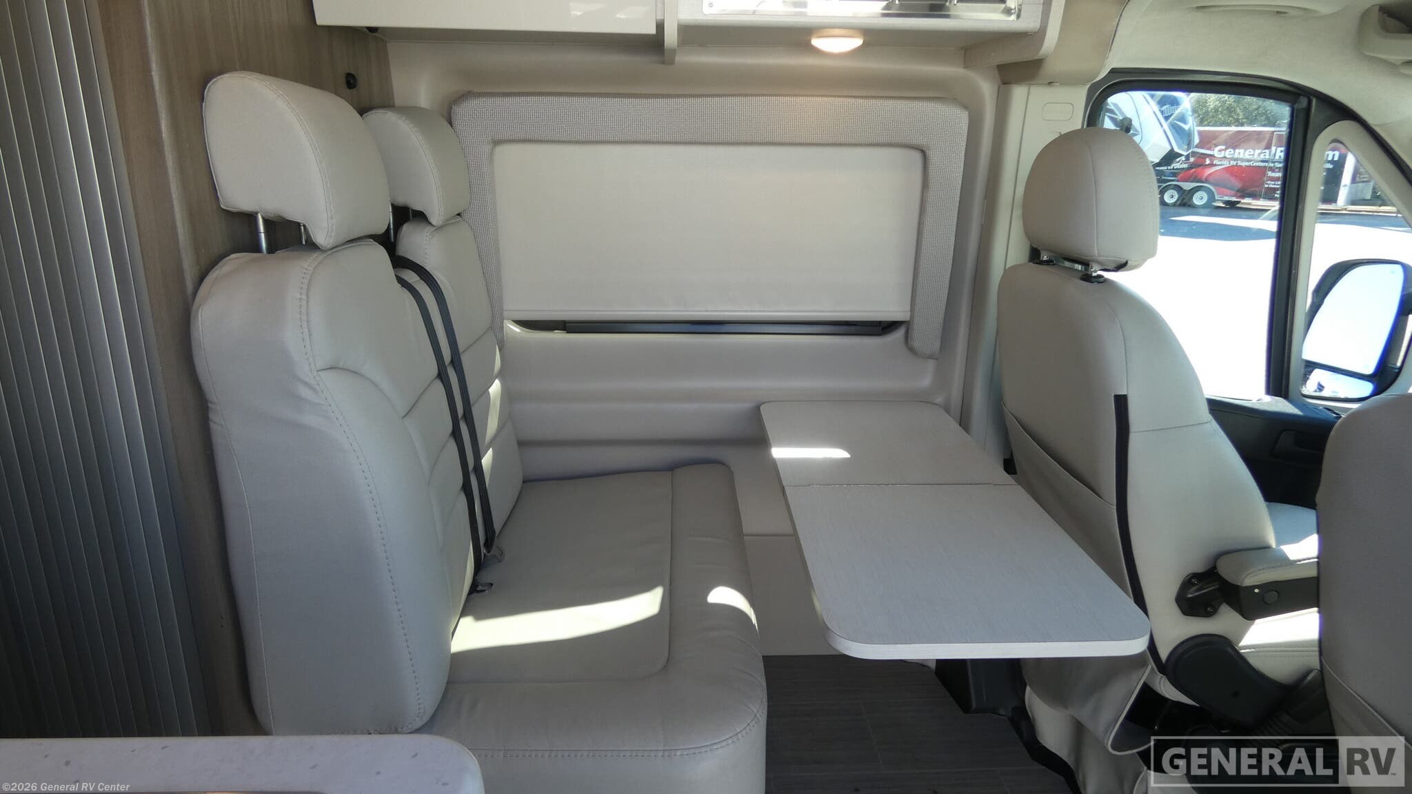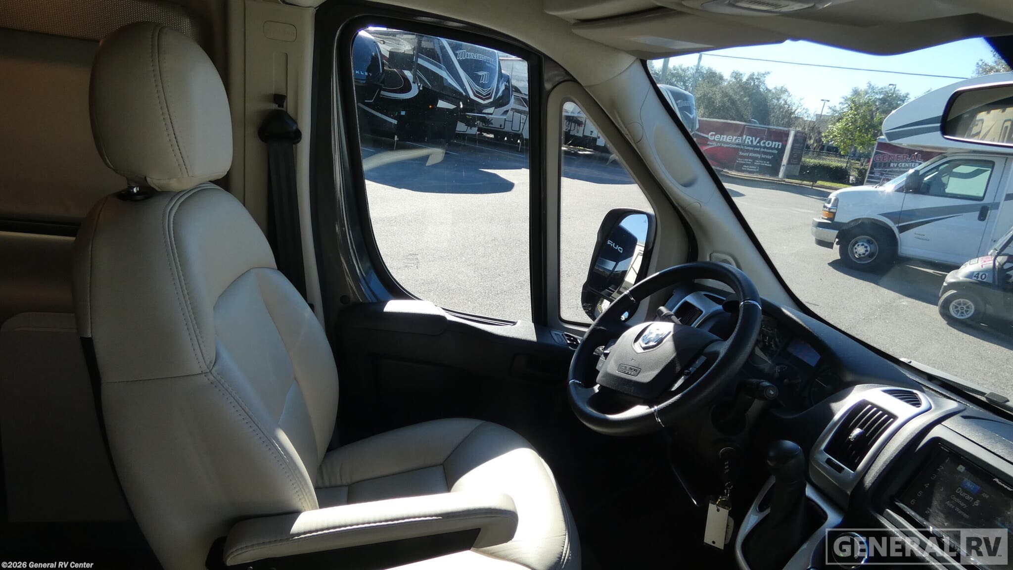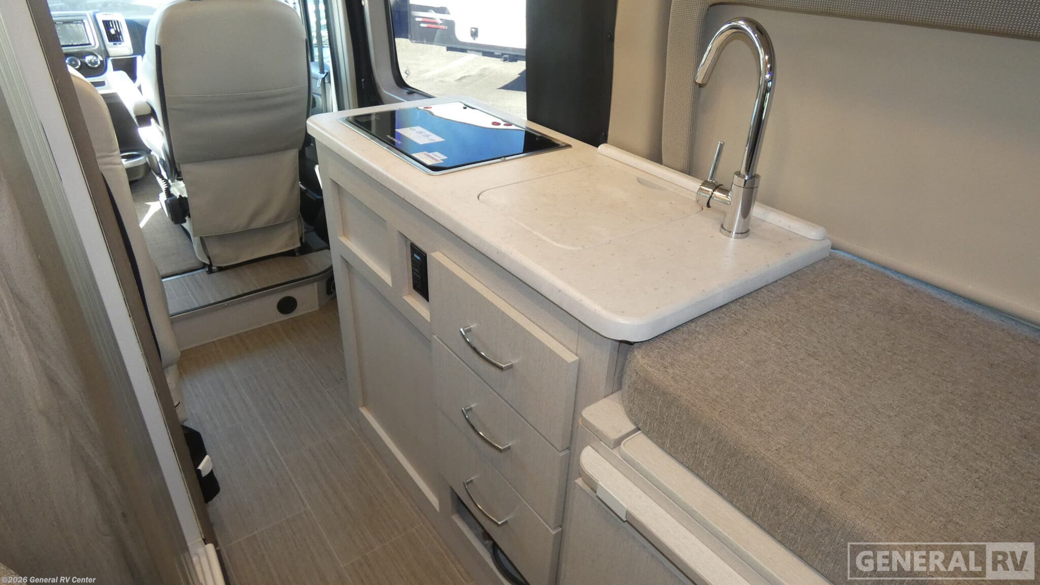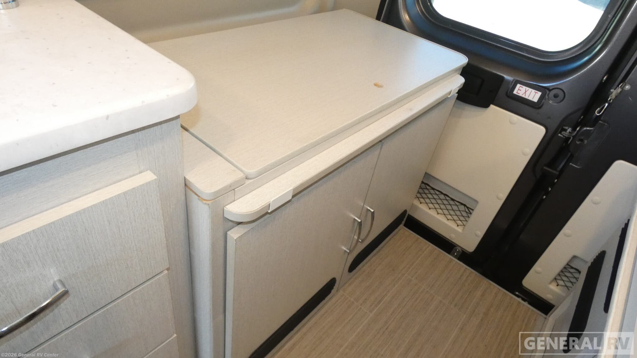 **Thor Motor Coach Rize Class B gas motorhome 18A highlights:** * Wet Bath * Pull Out Bed * Stainless Electric Refrigerator * Swivel Captain's Chairs Head to your favorite destinations with your favorite person in this coach! Easily travel to tailgates or school events and have everything you need accessible, as well as for those overnight road trips where you can stop and relax at anytime, and stay for as long as you like. The two burner cooktop and microwave oven makes cooking easy, and the wet bath is a convenience that you are sure to appreciate. The dinette offers a comfortable place to enjoy your meals and is next to an opening window so you can have a fresh breeze while you eat too. You will find plenty of storage for your things with several overhead cabinets, pull-out drawers, as well as storage beneath the 72" x 39" pull-out bed in back which creates sleeping for two. The Rize Class B gas motorhome by Thor Motor Coach allows you to experience the camping lifestyle in a compact RV packed with convenient features. There is a 3.6L Pentastar V6 engine and 276 HP to power your excursions, and the outdoor enthusiast will love the 190W solar panel and solar charge controller. Each model includes residential vinyl flooring, TechnoForm Euro-style upper cabinet doors, and premium window privacy shades. You'll find pressed countertops in the kitchen and a glass protective cover and task lighting above the cooktop to easily cook meals each day. The keyless entry system adds to the convenience found throughout these models, plus there is an exterior LP connection if you want to hook up your own grill and a rear water sprayer to wash off your hiking boots.