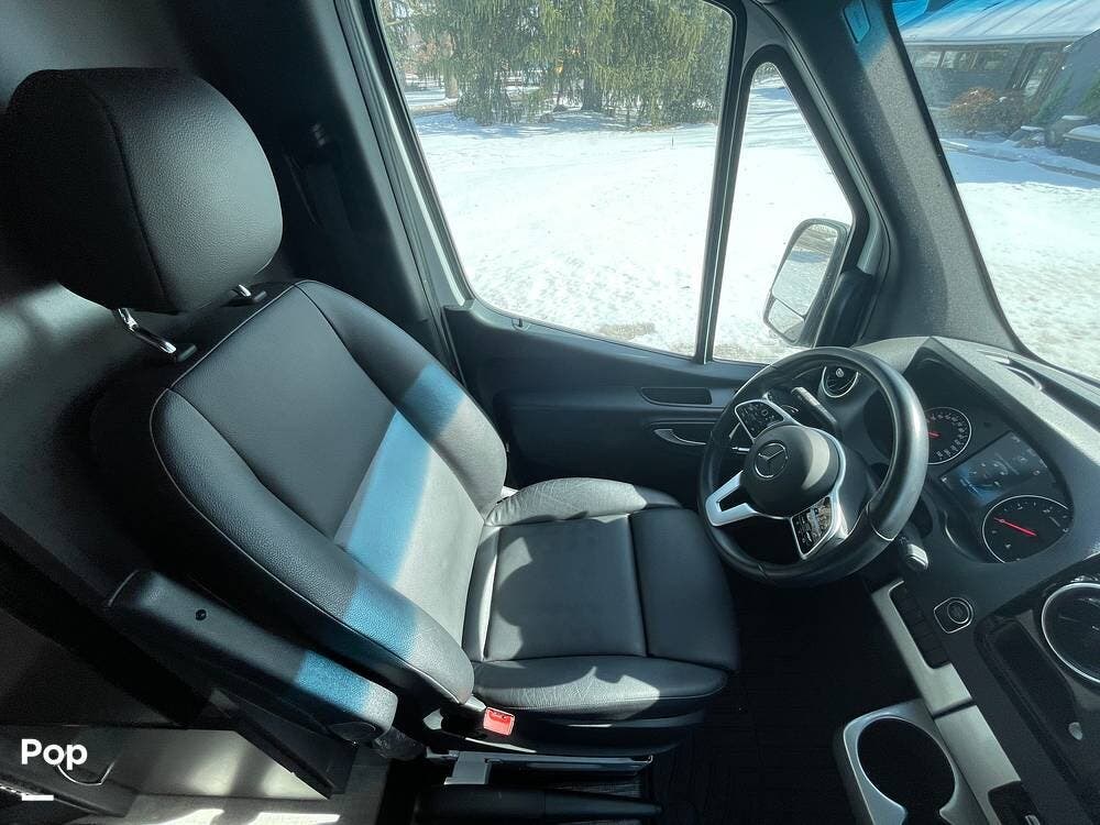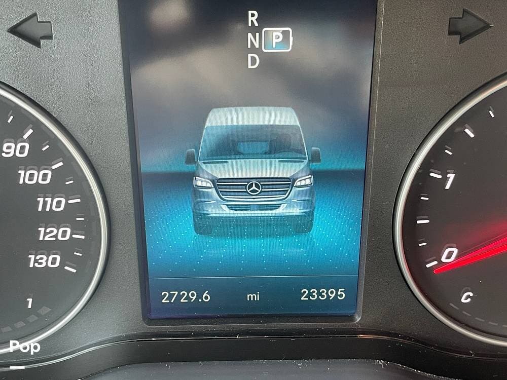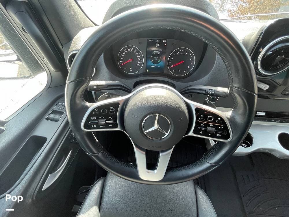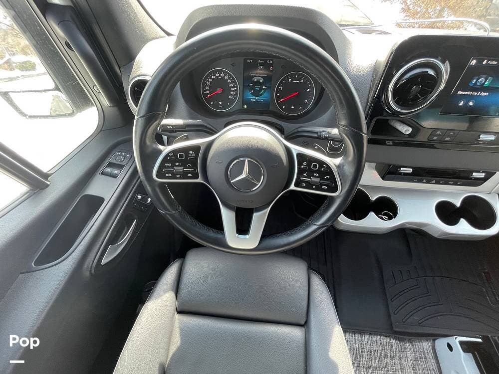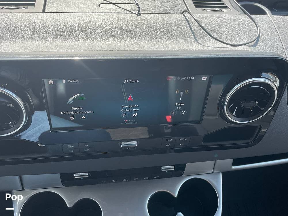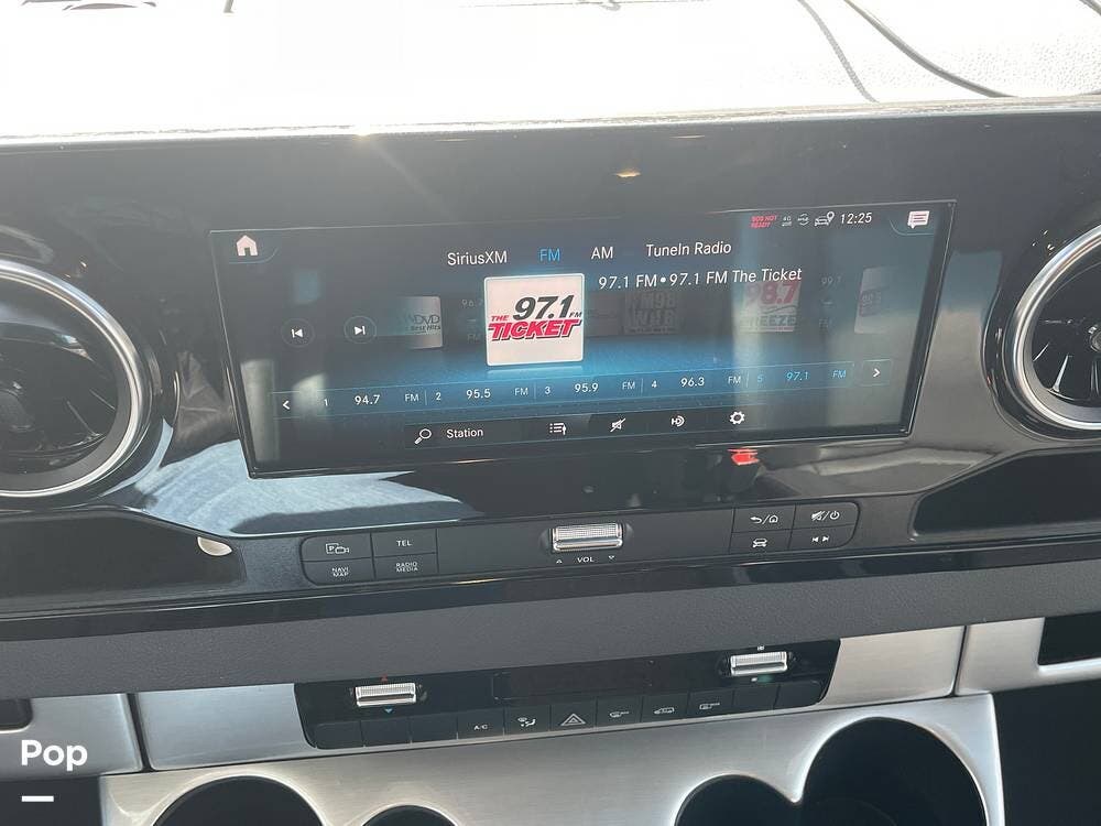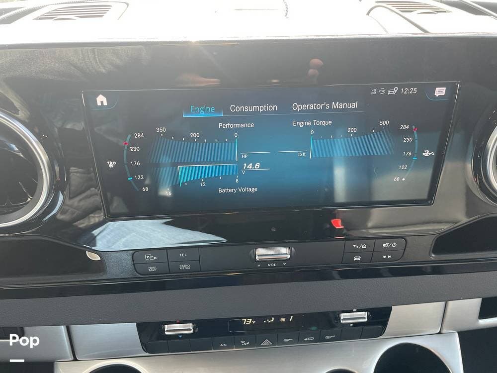 The 19P's cockpit features the Mercedes-Benz 10.25 multimedia dash radio with Bluetooth, navigation, SiriusXM readiness, and a backup monitor.