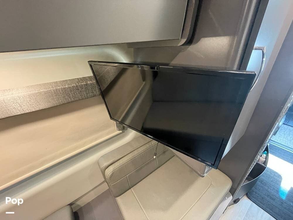 The rear bench sofa is equipped with three seat belts and can be electrically folded down with the touch of a button. A TV mounted to a swivel arm optimizes viewing.