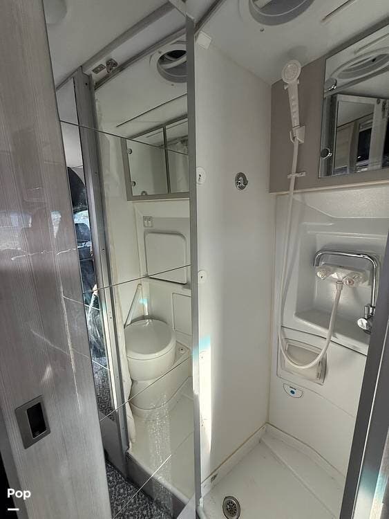 Designed for true off-grid capability, this coach comes equipped with solar power, lithium battery system, and onboard systems that let you camp without hookups. The compact kitchen includes everything you need, including an induction cooktop, refrigerator, and sink. The wet bath provides added convenience wherever you roam.