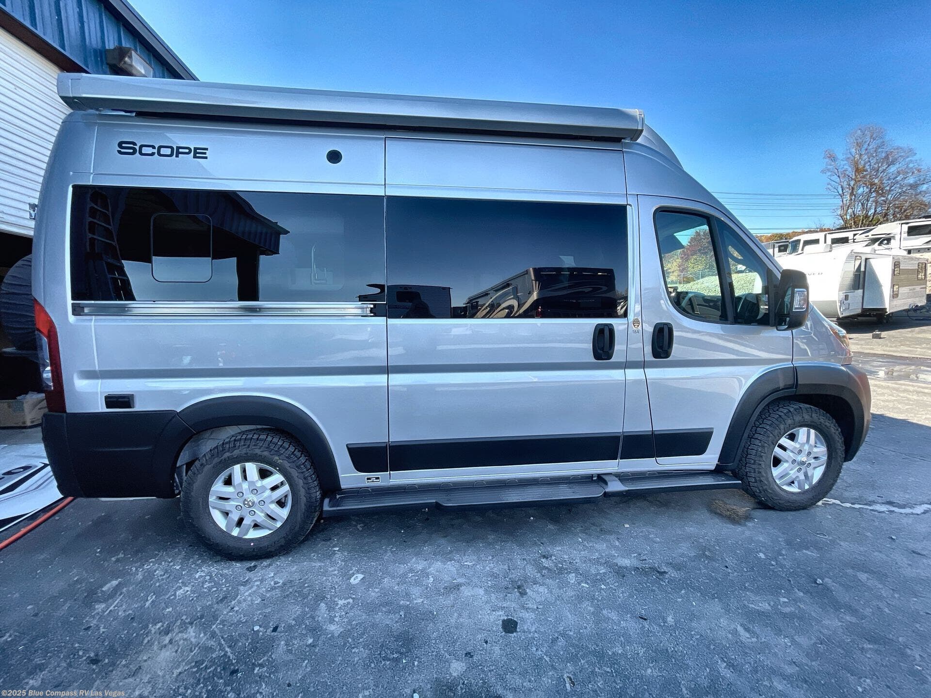 Each one of these Thor Motor Coach Scope Class B gas motorhomes are built for those who want to explore the great outdoors in comfort! They are front wheel drive and constructed with a RAM Promaster 1500 XT chassis, plus a 3,500 lb. trailer hitch with 4-pin connector so you can haul even more items with you. The side steps and large entryway make it easier to enter and exit the units, and the entryway screen door is an added bonus. The single door stainless electric refrigerator has a freezer for you to store your ice cream, and it is powered directly from the coach batteries which those are charged by the quiet OnanĀ® RV QG 2800 gas generator. Come find your perfect model and get out on the road today!