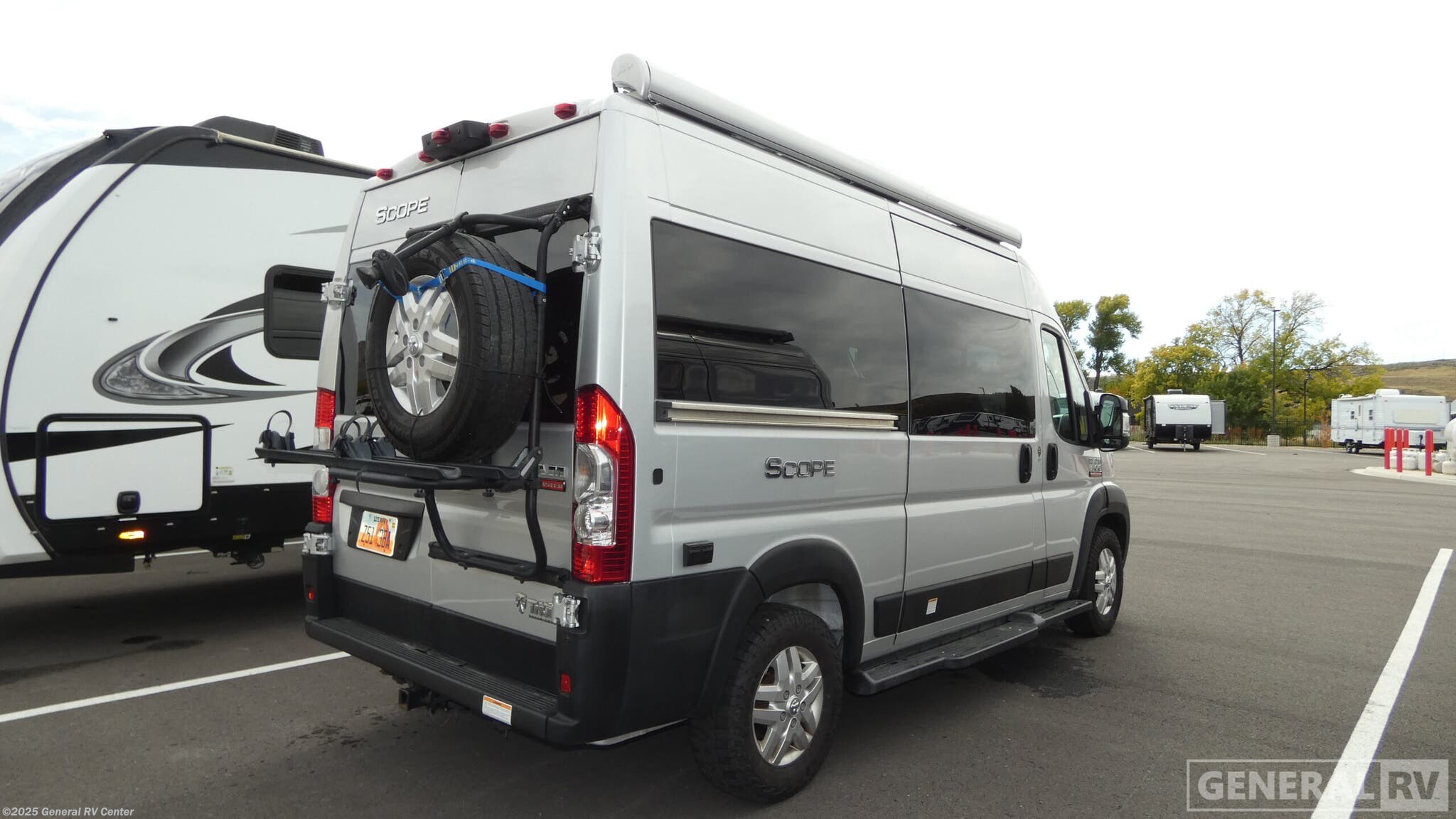 Experience the perfect blend of comfort and functionality with the 2022 Thor Motor Coach Scope 18M. This compact yet versatile RV is built on the robust ProMaster 3500 chassis, powered by a Pentastar VVT V6 engine, offering 280 horsepower and 260 lb-ft of torque. Its sleek design stretches just under 18 feet, making it ideal for both city streets and open highways. The Scope 18M is equipped with a 10 ft. powered retractable awning, perfect for creating an inviting outdoor space wherever you park. Inside, the Scope 18M is thoughtfully designed to maximize every inch of space. The front living area features swivel chairs, creating a cozy spot for relaxation or dining with the removable table. The center kitchen is equipped with a two-burner cooktop and a compact electric refrigerator, ensuring you can whip up meals with ease. At night, the convertible pull-out bed provides a comfortable sleeping space for two. The rear wet bath offers convenience and privacy, making this RV a complete home on wheels. With a fresh water capacity of 18 gallons and ample storage, the Scope 18M is ready for your next adventure. Whether you're a weekend warrior or embarking on an extended journey, this RV promises a seamless blend of style and practicality. For more information or to see it in person, visit your nearest General RV Dealership.